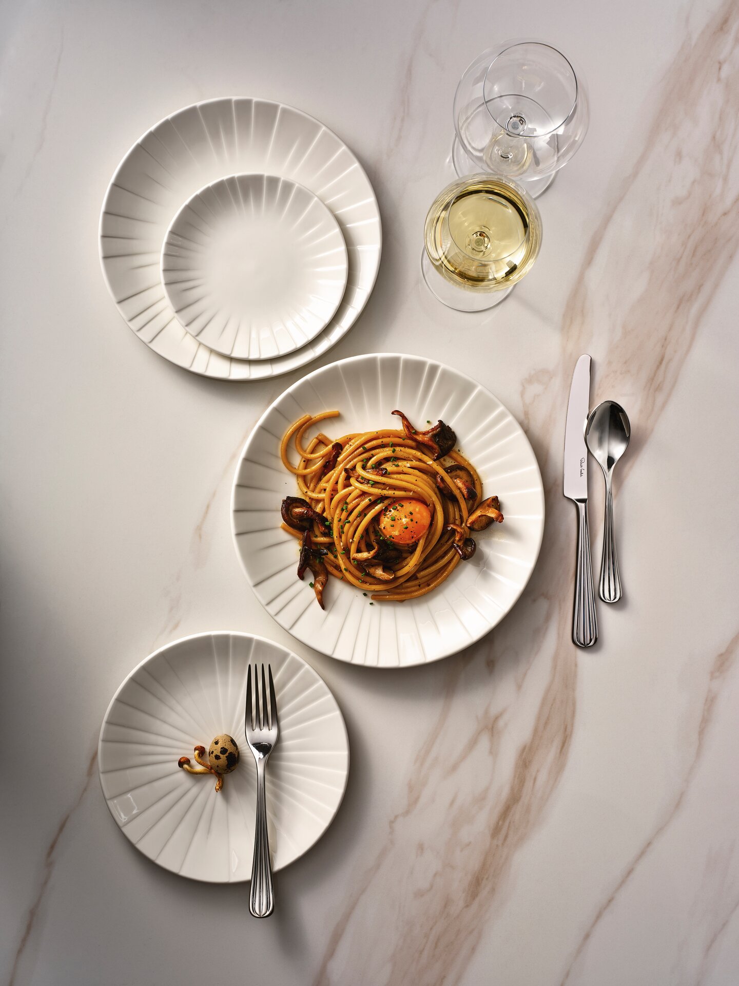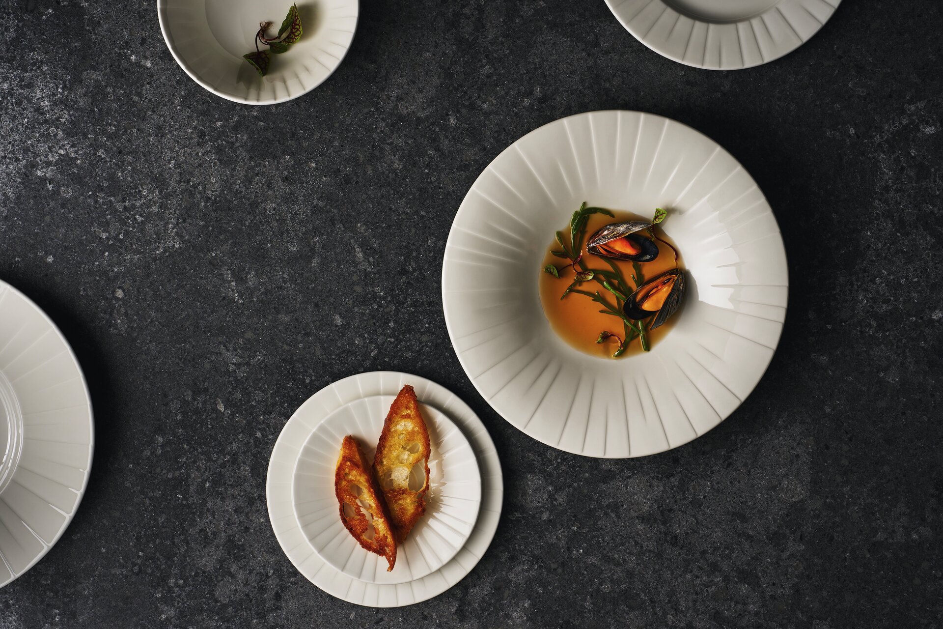 Alina vereint zwei starke, sich ergänzende Ästhetiken: die Schlichtheit, Geradlinigkeit und Zurückhaltung japanischen Designs gepaart mit einem lockeren, lässigen Stil, der den skandinavischen Lebensstil verkörpert. Die Alina-Prägung lenkt den Blick auf die Mitte des Möbelstücks und verleiht der Kreativität des Küchenchefs Gewicht und Fokus. Alina bietet ein Zusammenspiel aus Licht und Linien und bietet eine entspannte und moderne Plattform für moderne Bankette und gehobene Gastronomie.