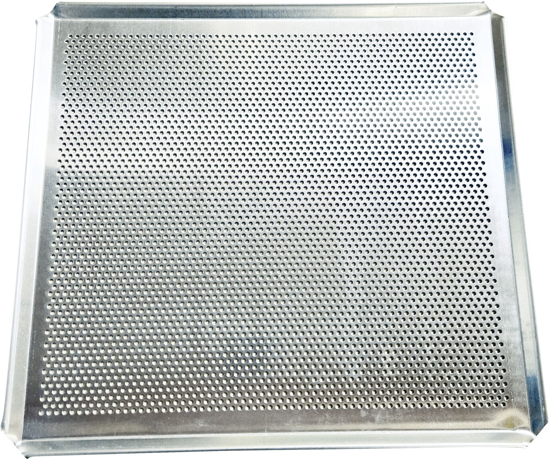 Gelochtes Aluminiumblech. GN 2/3. Höhe 10mm. Bis max. 270°C. Abwischen mit feuchtem weichem Tuch (Schwamm) genügt