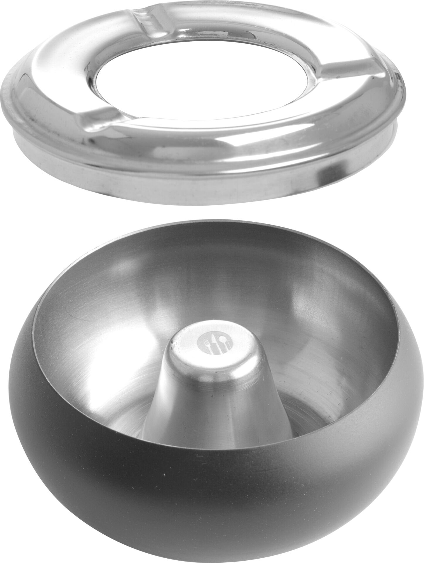 ØxH in cm: 10,5x5,8 Edelstahl, Unterteil mattschwarz lackiert. Mit abnehmbarem Deckel.