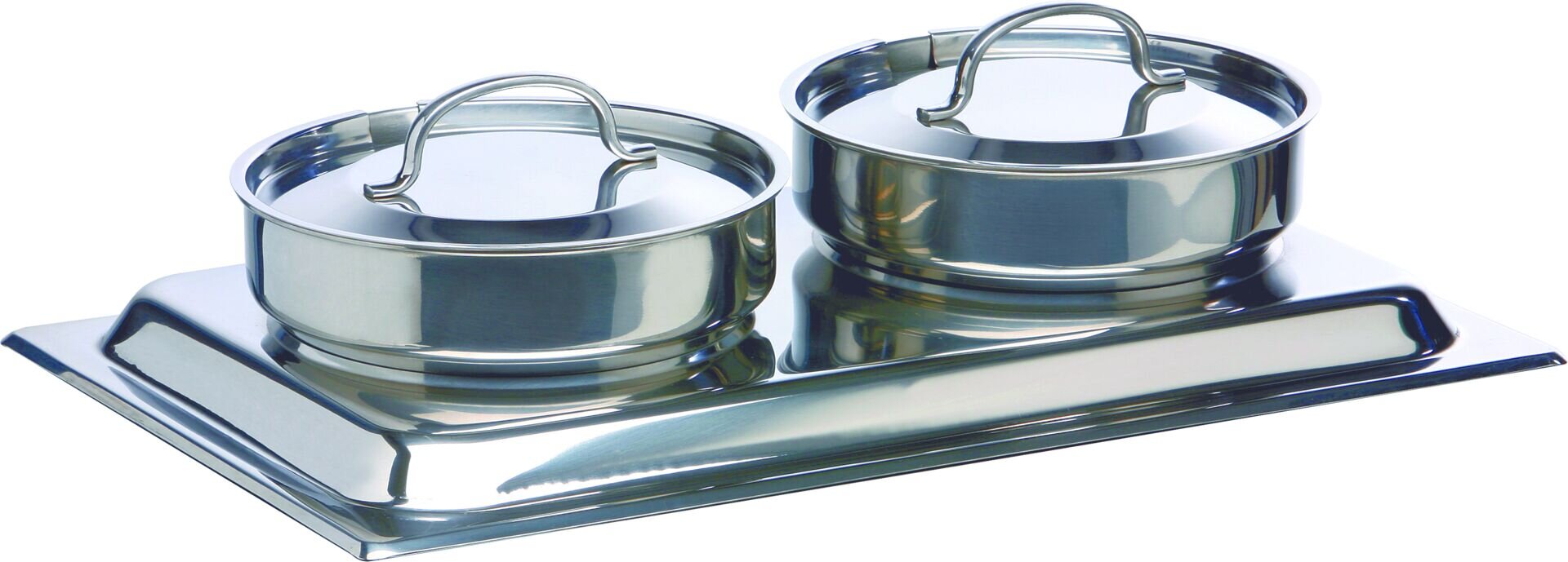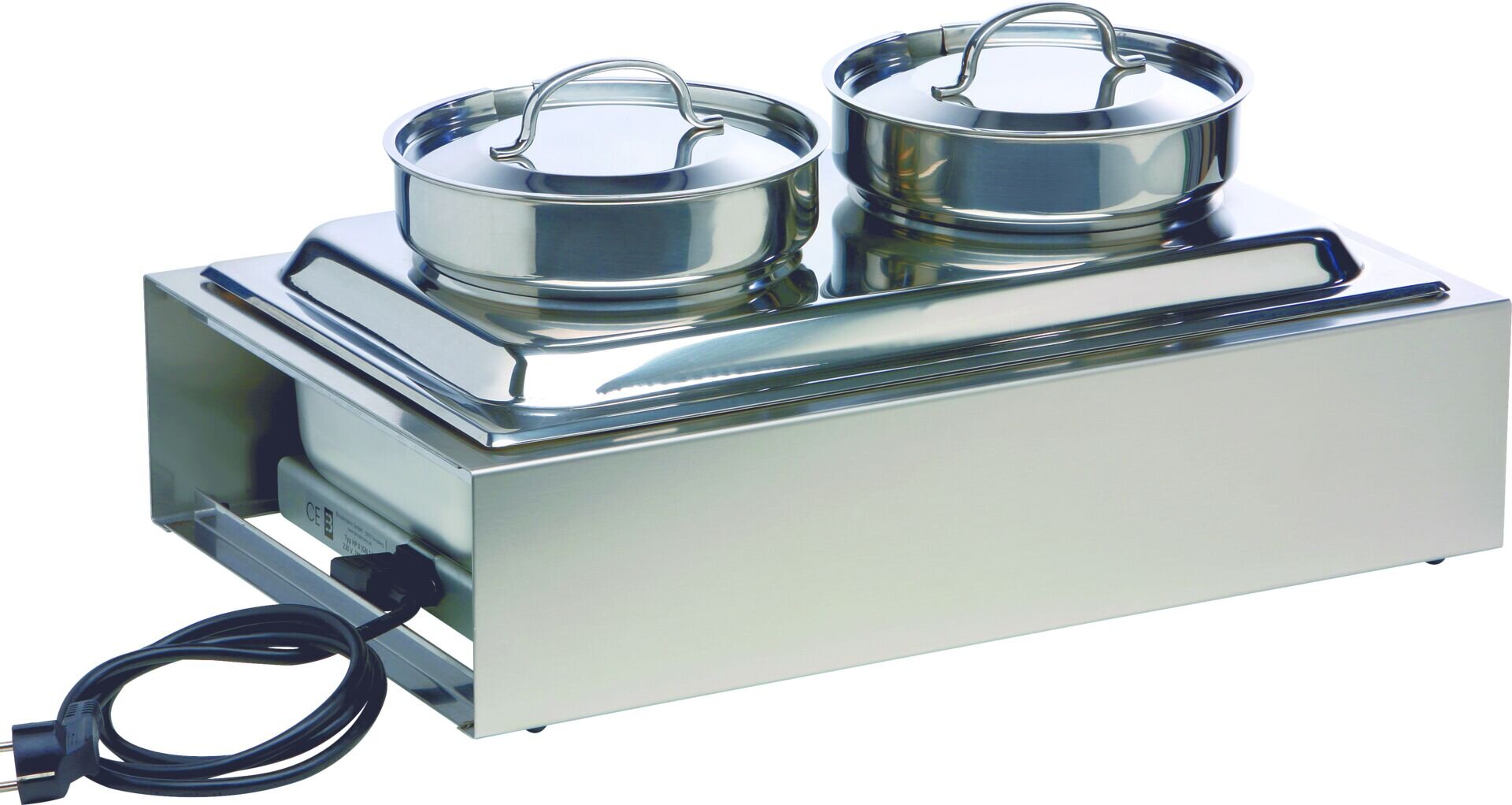 Element: Suppenstation Ausführung: 3tlg. 3-teilig. Buffetsystem Aufsatz mit 2 Suppentöpfen mit je 4 L Inhalt, inkl. Deckel. Art. 40001.A und Art. 40001.E