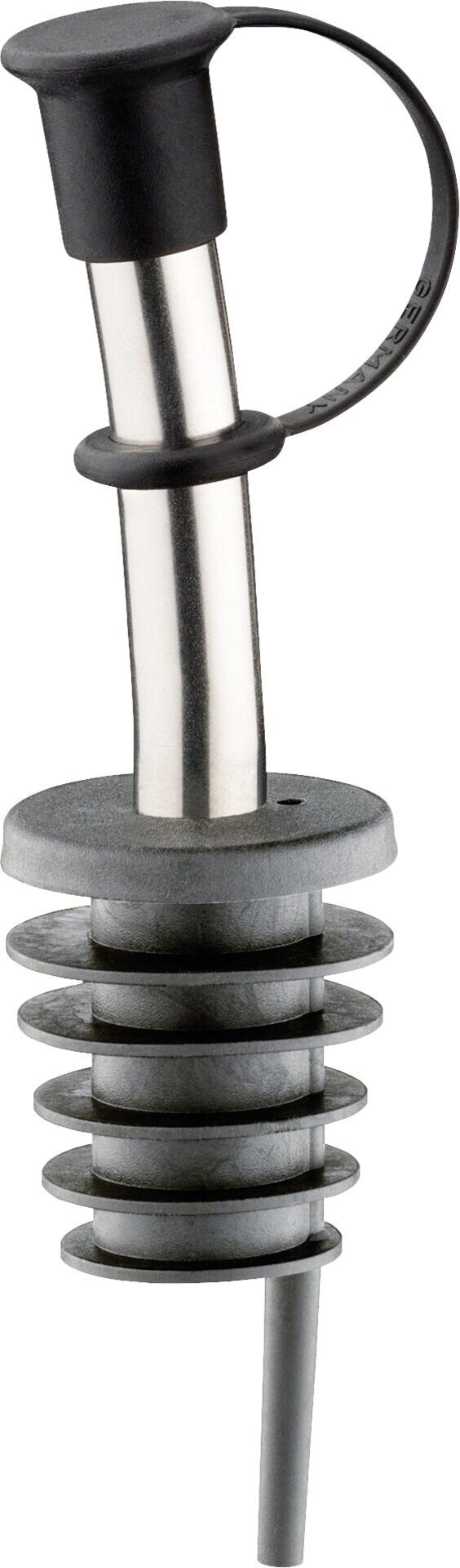 Kunststoffkork u. Verschlusskappe. Hochwertiger Edelstahl. Geeignet für alle üblichen Spirituosen, besonders auch für saure Getränke und Essig. In der Regel passend für 0,7 - 1 Liter Flaschen.