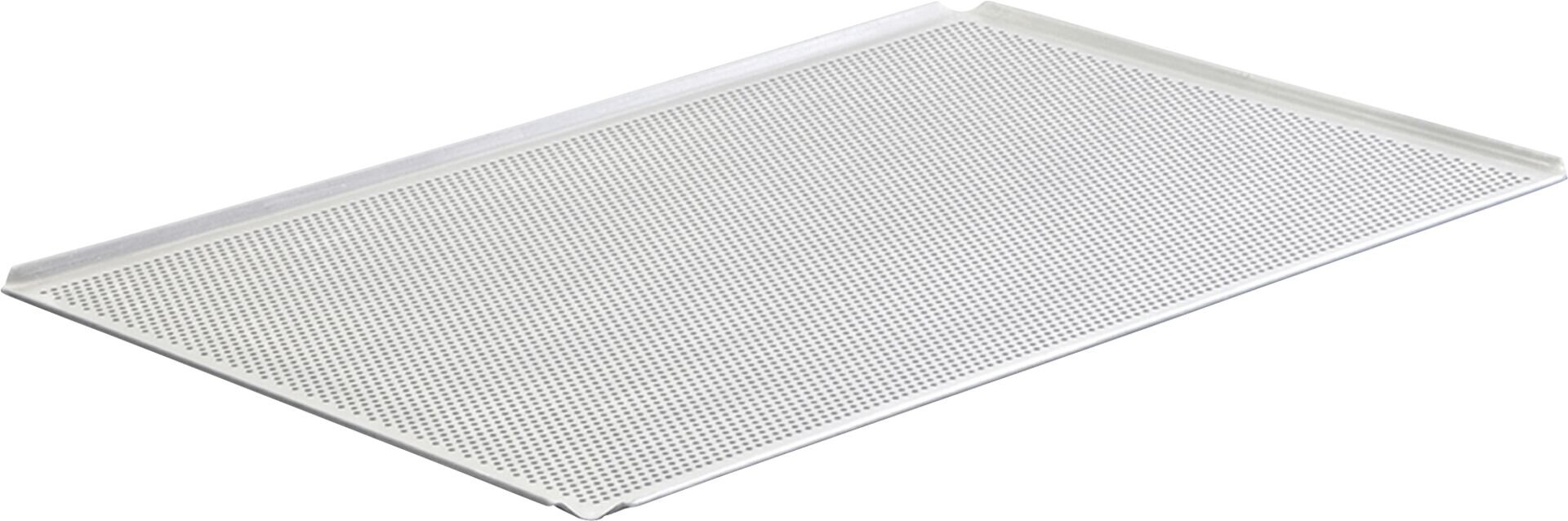 LxBxH in cm: 60,0x40,0x1,0 Ausführung: gelocht Ideal auch für Halbfertigerzeugnisse oder zum schnellen Aufbacken. Aluminium. Lochung: 3 mm. Materialstärke: 1,5 mm. 4 Seiten 45°. Profi Bäckerblech. Die Lochung verbessert die Heißluftzirkulation und beschleunigt die Backzeit um 2 bis 3 Minuten. Ideal auch für Halbfertigerzeugnisse oder zum schnellen Aufbacken.
