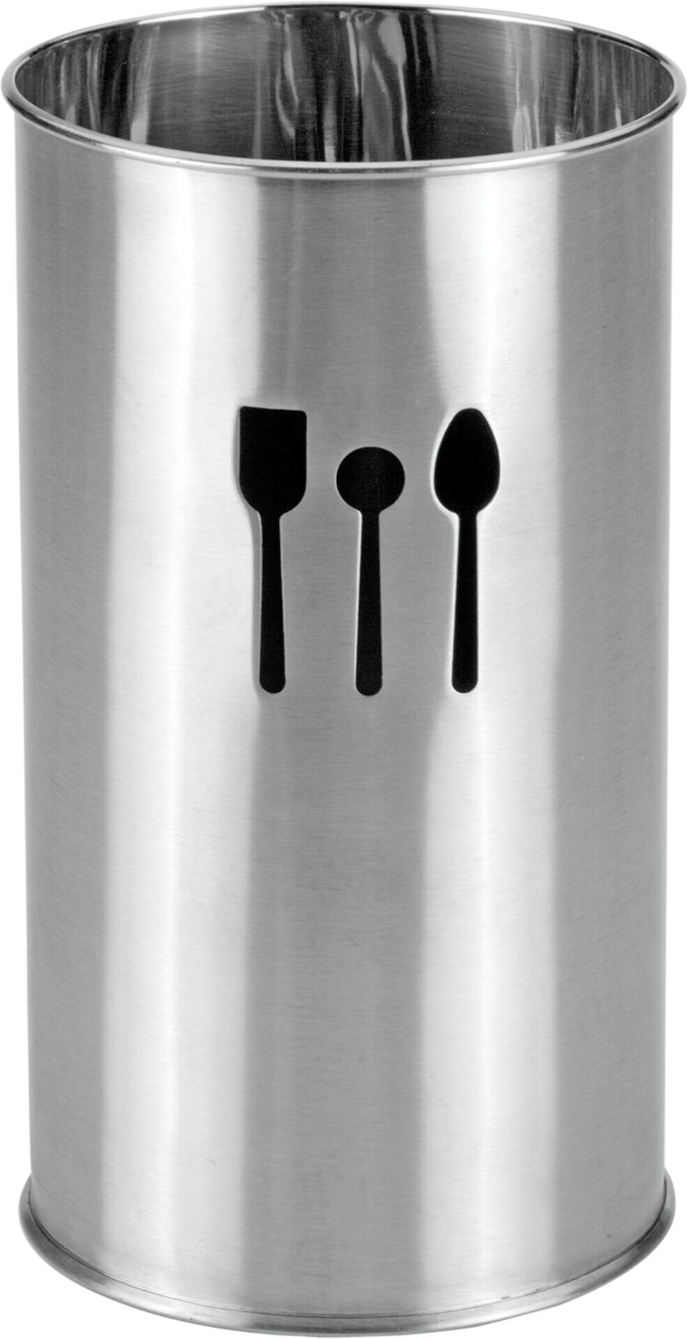 ØxH in cm: 10x18,7 Edelstahl. Mit ausgesparten Besteck-Symbolen.