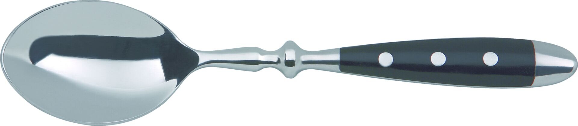 Chrom-Nickel-Stahl 18/10, rostfrei, geschmiedet. 5 mm stark. Kunststoff Griffschalen, 3-fach genietet. Spülmaschinengeeignet. Qualitätsbesteck. Sehr hohe Stabilität.