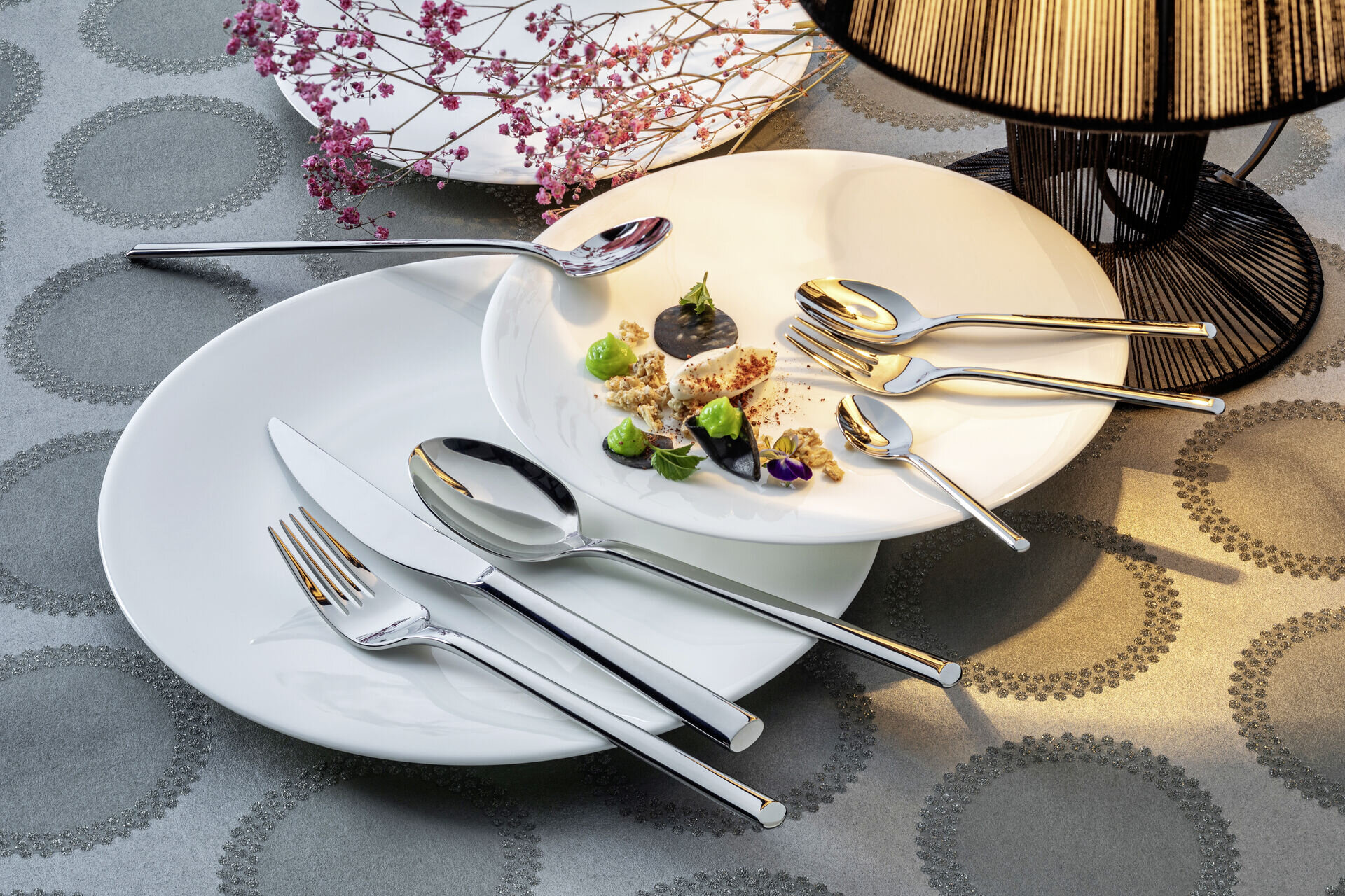 Chrom-Nickel-Stahl 18/10, rostfrei, poliert. Messer mit geschmiedeter Klinge. 4,0 mm stark. Ausführung: Tafelmesser Länge in cm: 22,9