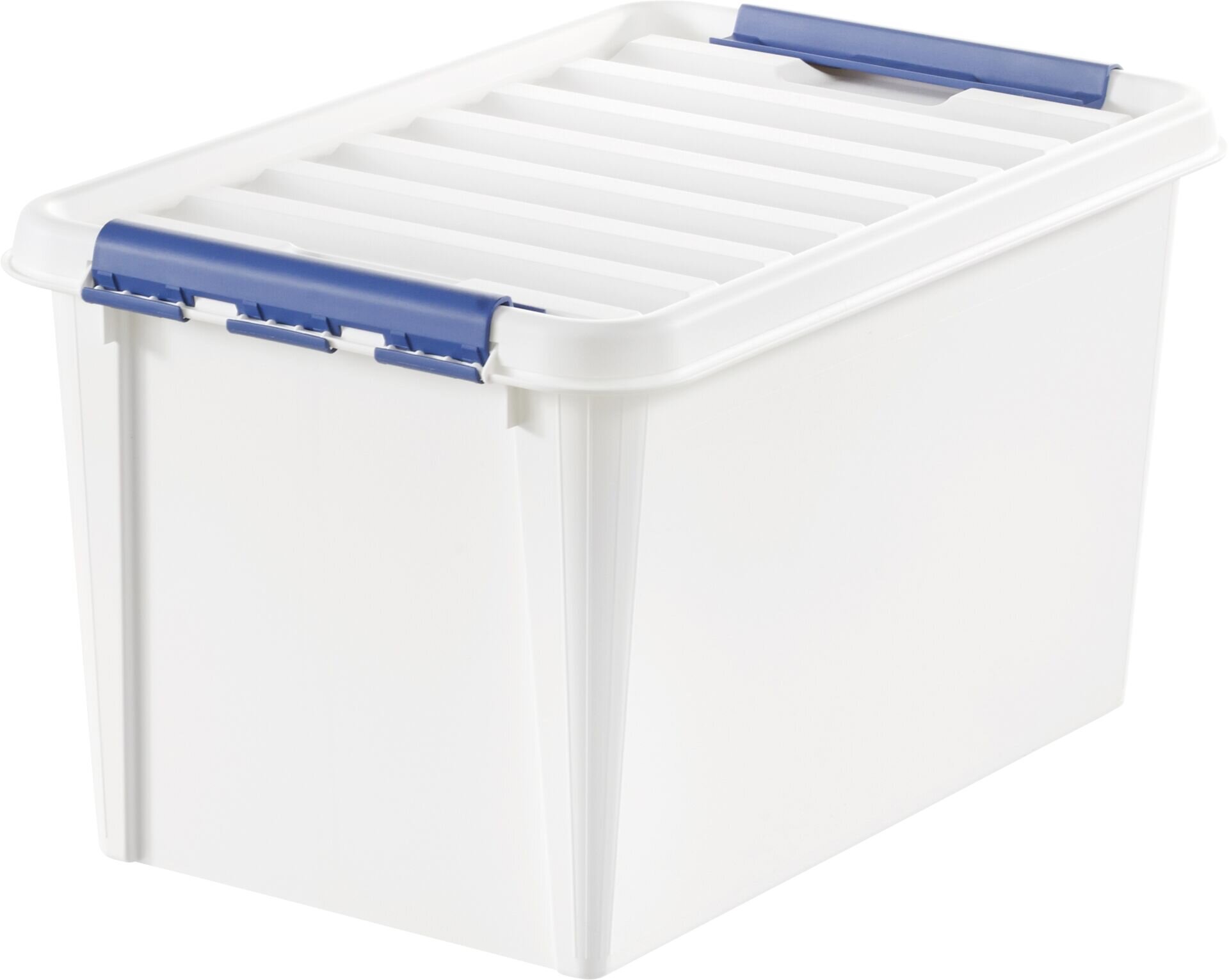 Weiß. Für Transport und Lagerung von Lebensmitteln oder Geschirr, Besteck etc. Schlagfest, stapelbar und beständig gegen Temperaturwechsel (-40 bis + 120°C). Mit Deckel und Verschlussclips. 10 Jahre Garantie. Dazu sind 3 verschiedene Einsätze erhältlich: 150304: Einsatz 13x12x15 cm, transparent. 150305: Einsatz 6er Set, transparent bestehend aus 3 Boxen á 25x11 cm + 3 Boxen á 10,3x8,3 cm. 150306: Einsatz 37x28x9 cm transparent. Ausführung: Box 45 Liter Maße: 59x39x34 cm Polypropylen. Weiß. 59x39x34 cm. 45 Liter. Für Transport und Lagerung von Lebensmitteln oder Geschirr, Besteck etc. Schlagfest, stapelbar und beständig gegen Temperaturwechsel (-40 bis +120°C). Mit Deckel und Verschlussclips. 10 Jahre Garantie.