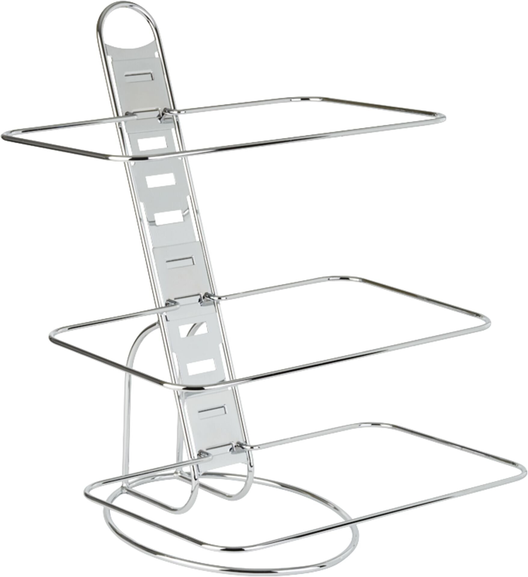 Stahl, verchromt. 4-teilig, bestehend aus 1 Leiter-Gestell und 3x 1/1 GN Rahmen. Je Rahmen passend für 1x 1/1 GN, 2x 1/2 GN oder 3x 1/3 GN Behälter verschiedener Materialien - daher sehr vielseitig. Pflege: keine scheuernden Hilfsmittel verwenden, nur weiche Lappen.