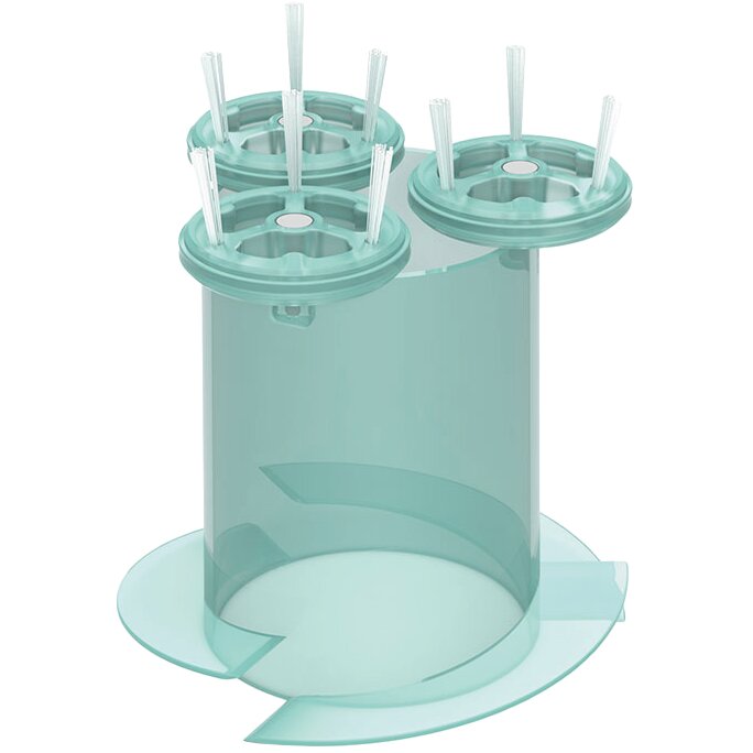 Mit Bürsten und Wellen-Abstreifer zur hygienischen Reinigung der Lebensmittel-Kontaktflächen im Mousse-Chef, hochwertiges, lebensmittel-echtes Tritan, türkis, anzuwenden zusammen mit dem "Cleaningseal" und ohne "Dancer".