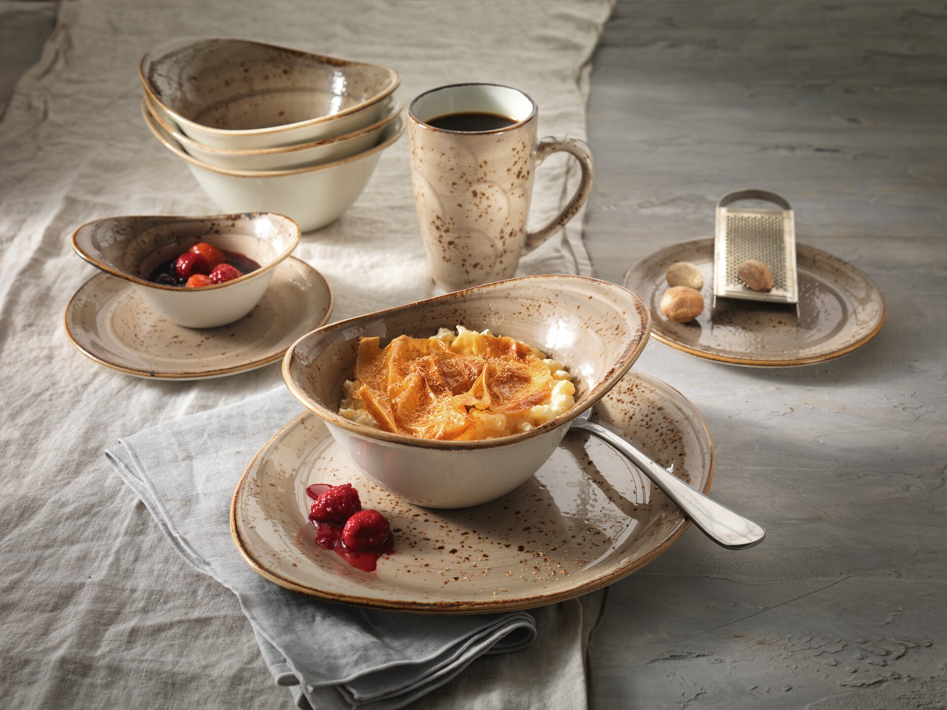 Craft ist inspiriert von handgearbeiteter, einfacher rustikaler Keramik, die von Generationen von Töpfern über Jahrhunderte hergestellt wurden. Das Sortiment verkörpert die Schönheit reicher, glänzender Glasuren, die von Hand aufgetragen werden, und zelebriert Zufallseffekte und Reaktionen, die auf natürliche Weise im Brennofen entstehen. Die edelsteinartigen Glasuren in Verbindung mit einfachen Formen und Formen erzeugen ein einzigartiges und individuelles Erscheinungsbild und verleihen Craft eine rustikale „Lebensfreude".