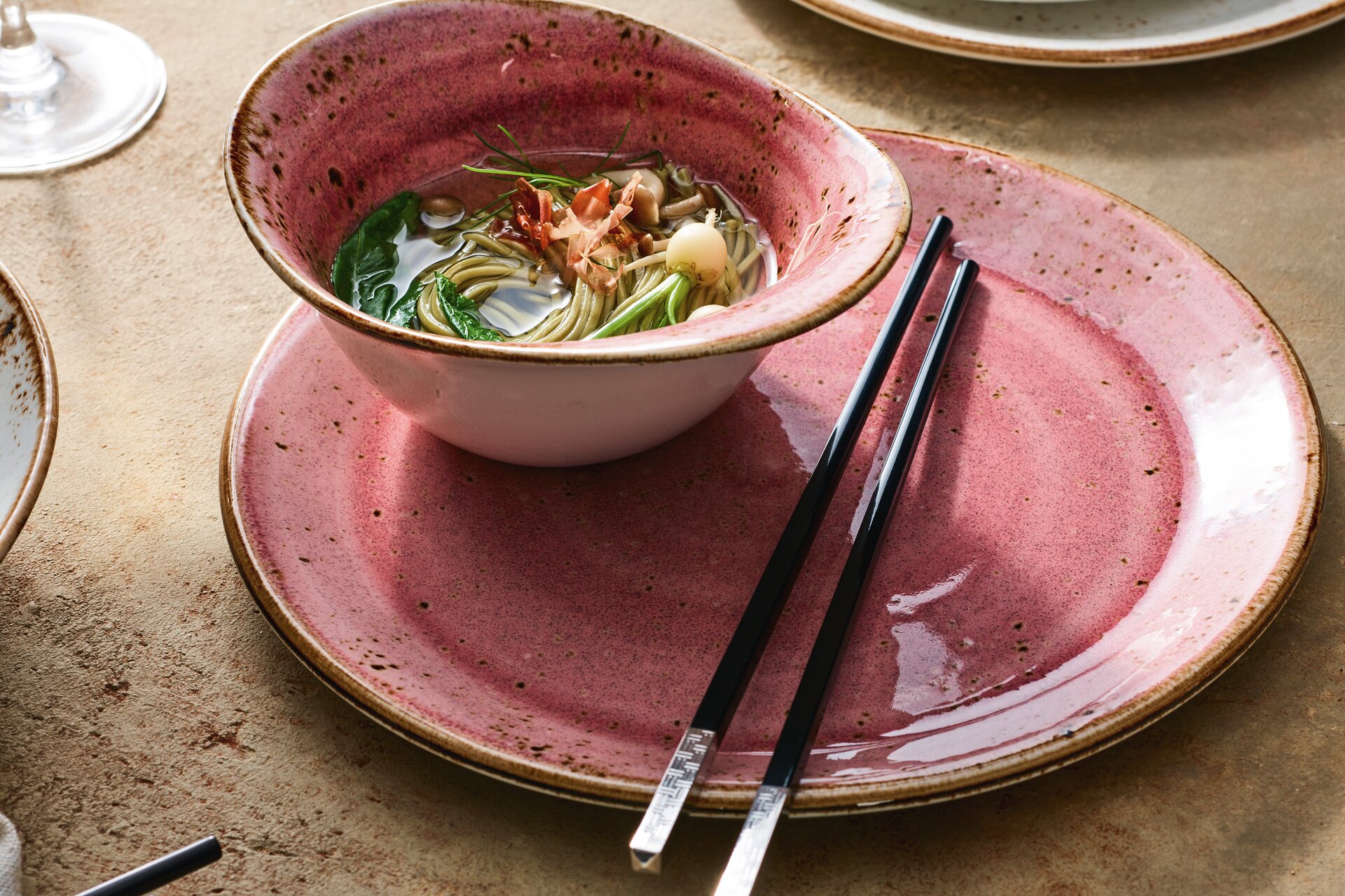 Craft ist inspiriert von handgearbeiteter, einfacher rustikaler Keramik, die von Generationen von Töpfern über Jahrhunderte hergestellt wurden. Das Sortiment verkörpert die Schönheit reicher, glänzender Glasuren, die von Hand aufgetragen werden, und zelebriert Zufallseffekte und Reaktionen, die auf natürliche Weise im Brennofen entstehen. Die edelsteinartigen Glasuren in Verbindung mit einfachen Formen erzeugen ein einzigartiges und individuelles Erscheinungsbild und verleihen Craft eine rustikale „Lebensfreude".