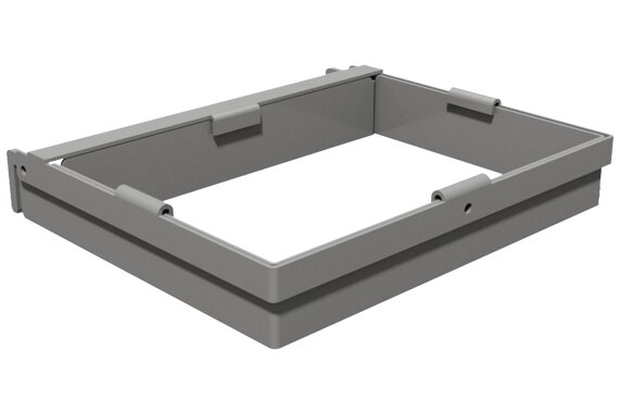 Ein Rahmen, an dem ein Behälter oder eine Plastiktüte für Abfälle aufgehängt werden kann. Wird an den „Tray Holder“ angebracht.