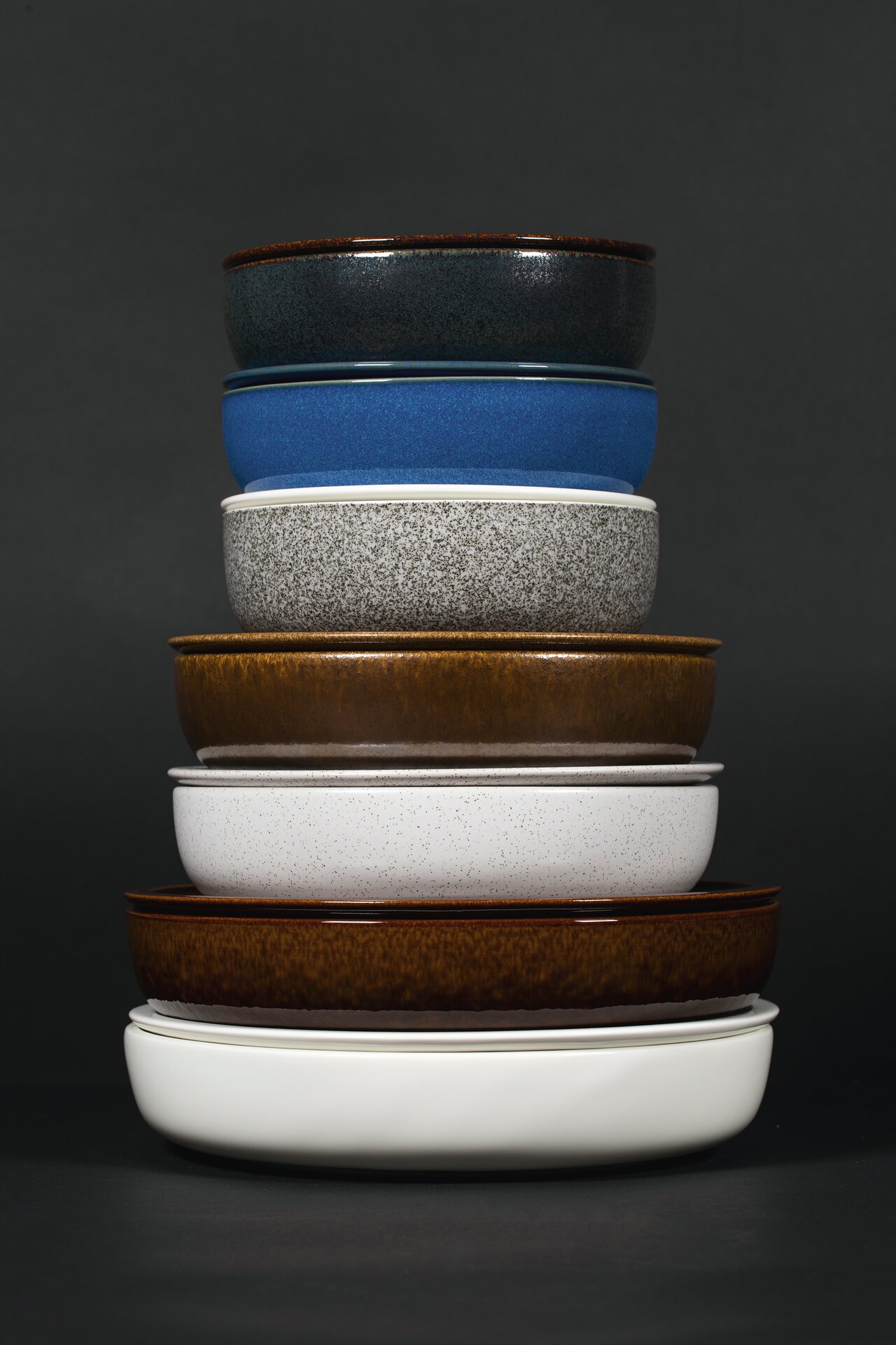 Ganz im Einklang mit der heutigen Zeit besteht diese Serie aus sieben von Hand bemalten Dekors mit zarten und rustikalen Farbtönen, die ihren Fokus auf „Bowl Food“ setzt. Sie bietet eine große Auswahl an Größen und Schalenvolumen, flachen Schalen, aber auch Tellern. Das komplette und robuste Service eignet sich auch zur Verwendung im Alltag. Hergestellt aus Rakstone, einem exklusiven Material. Ease-Artikel werden von Hand bemalt. Dadurch können leichte Variationen bei Farbe und Kontrast auftreten.
