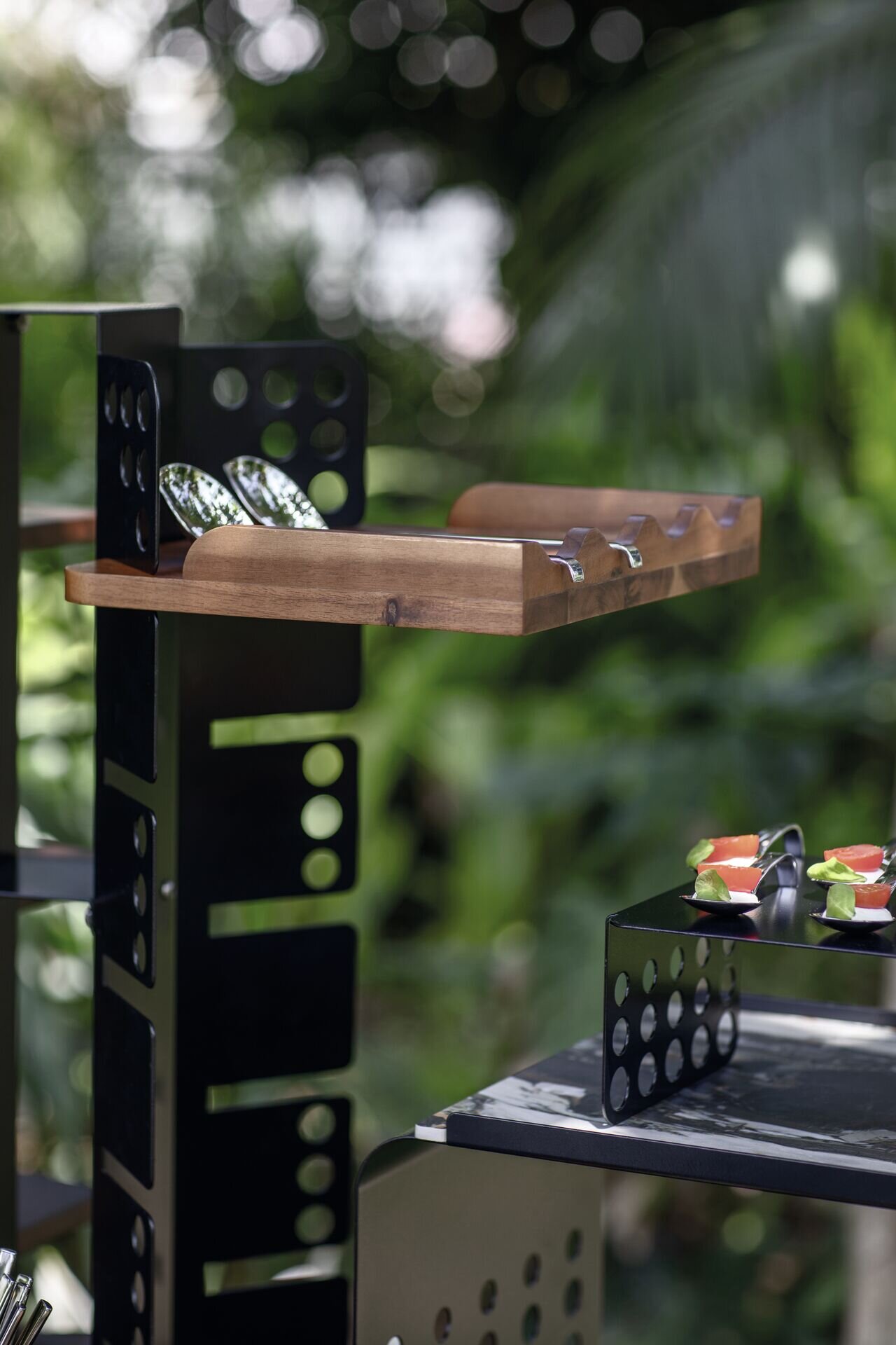 Mit Aufkantung, gewellt - als Löffelablage (z.B. Chafingdish-Löffel, Salatbesteck usw.) geeignet.