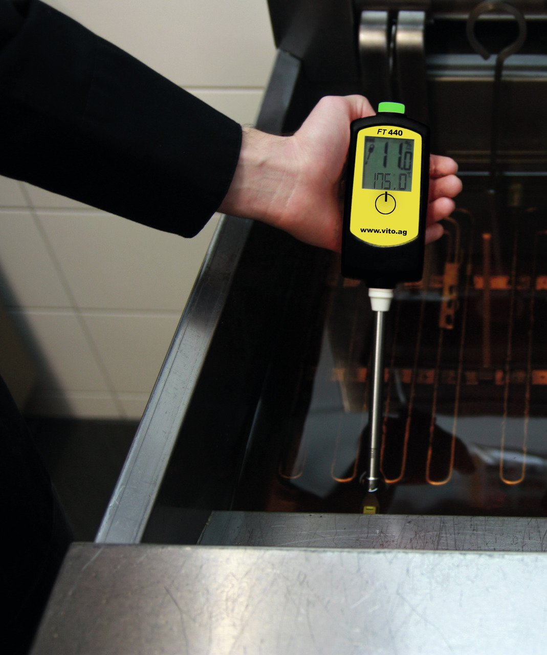 Der FT 440 stellt einfach, schnell und zuverlässig die Qualität Ihres Frittieröls fest. Dafür misst er die "Polaren Anteile" (TPM) im Öl und gibt diese in Prozent an.