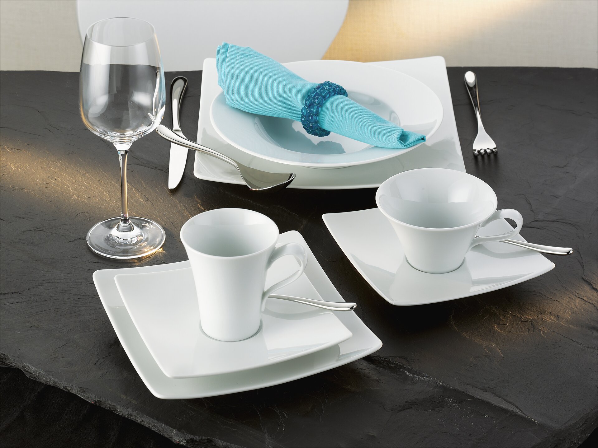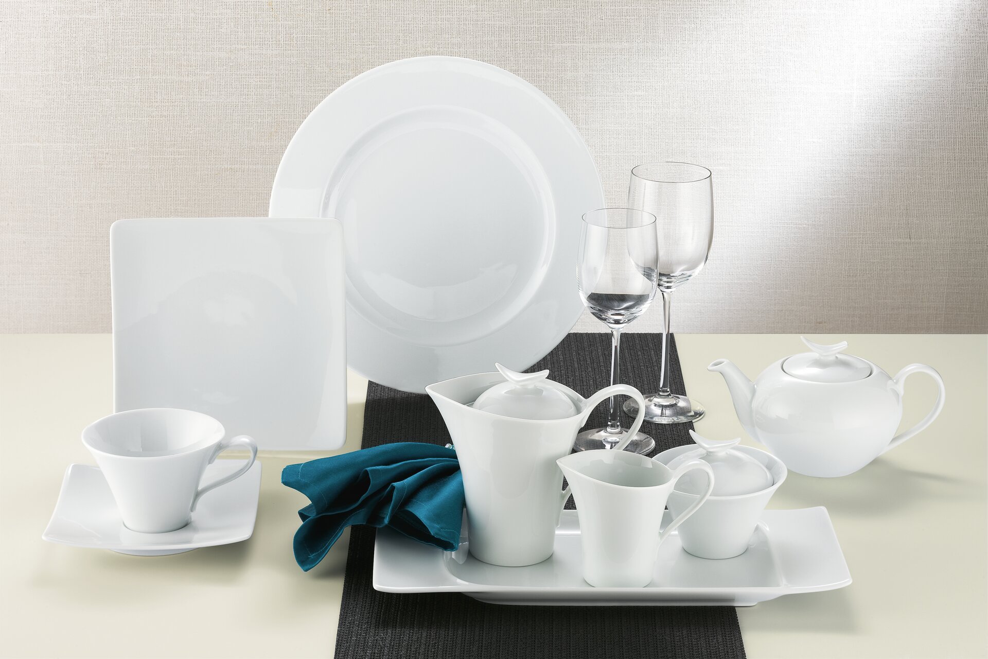 Klassische Eleganz – in einer klaren, zeitlosen Form. Der besondere Charme liegt in der Kombination aus runden und quadratischen Tellern und weich geschwungenen Hohlteilen. Ein anmutiger Purismus, der ganz unterschiedliche Ansprüche befriedigt.