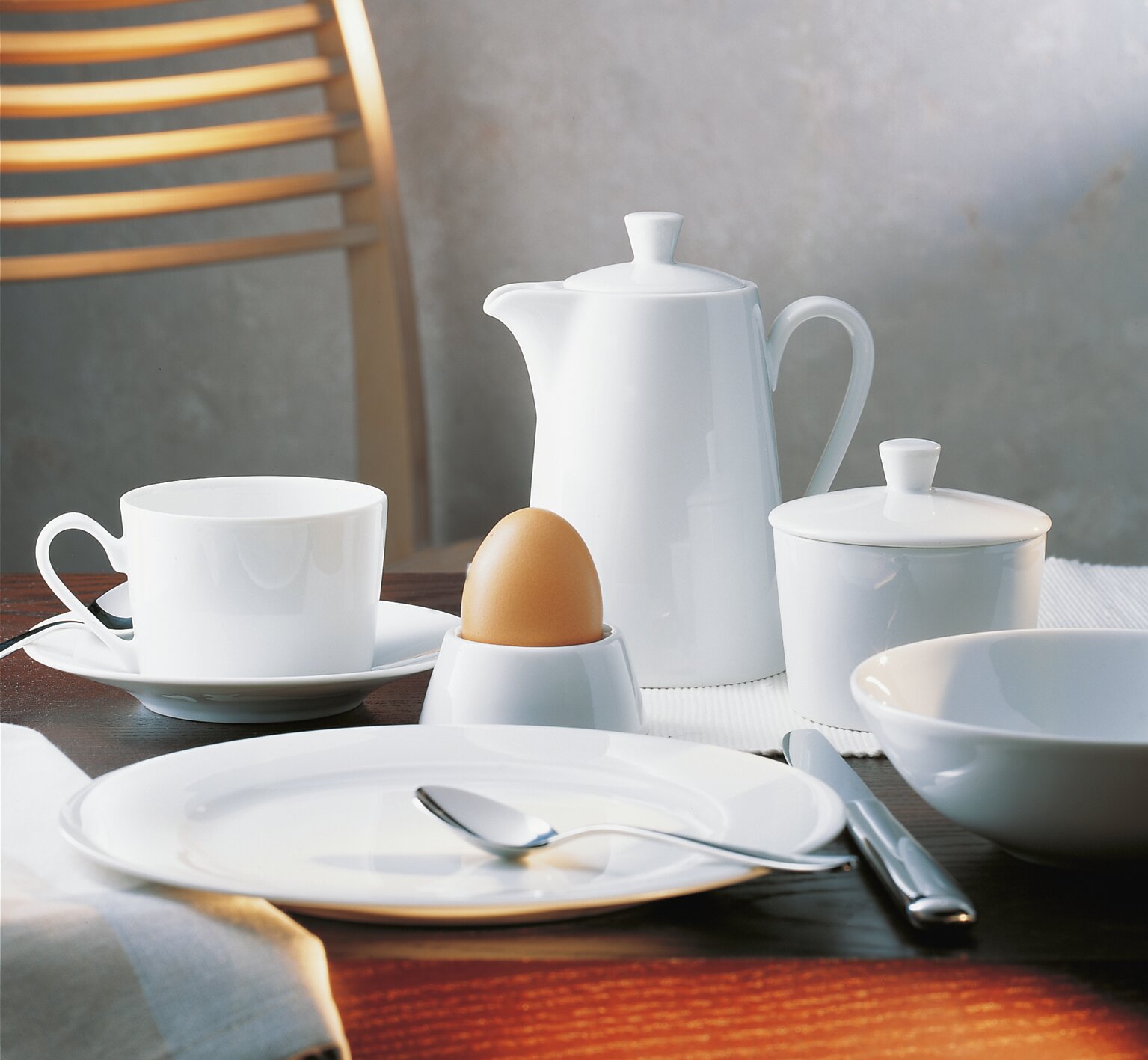 Klassische Eleganz – in einer klaren, zeitlosen Form. Der besondere Charme liegt in der Kombination aus runden und quadratischen Tellern und weich geschwungenen Hohlteilen. Ein anmutiger Purismus, der ganz unterschiedliche Ansprüche befriedigt.