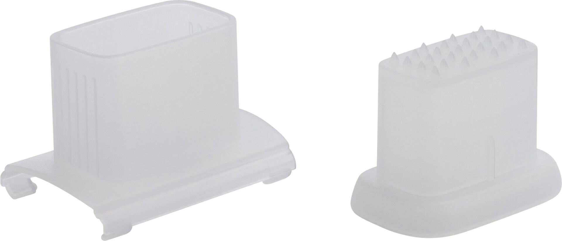 PP, schützt die Finger und ermöglicht ein gefahrloses Reiben auch von sehr kleinen Stücken, spülmaschinengeeignet.