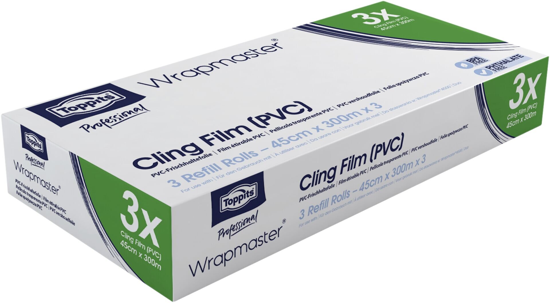 PVC, Stärke 6,5my, geeignet für: Margarine, Butter, Käse, Fleisch, Fisch, Früchte, Gemüse und Tiefkühlwaren. Mikrowelle: zum Auftauen und Erhitzen geeignet. Hier bitte den direkten Kontakt mit Lebensmittel vermeiden ! Die Folie ist nicht geeignet für: reines Fett, Öl, in Öl eingelegte Lebensmittel, Backöfen oder Mehrzwecköfen, 3er Pack. Länge in m: 300 Breite in cm: 45 passend für: Wrapmaster 4500 (14506) + Duo (14507)