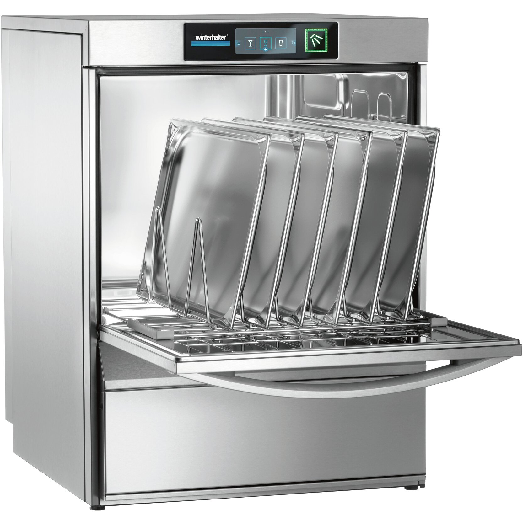 › mit QR-Code – für einfachen Zugang zur digitalen Servicewelt von Winterhalter (In Verlängerung des Displays, an der rechten Vorderseite der Maschine)
