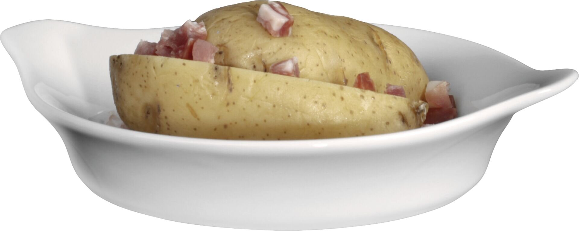 Porzellan, weiß. Planer Boden. Feuerfest bis 300°C. Spülmaschinengeeignet. Mikrowellenfest. Inhalt in L: 0,30 LxBxH in cm: 18,0x15,5x3,3/3,8