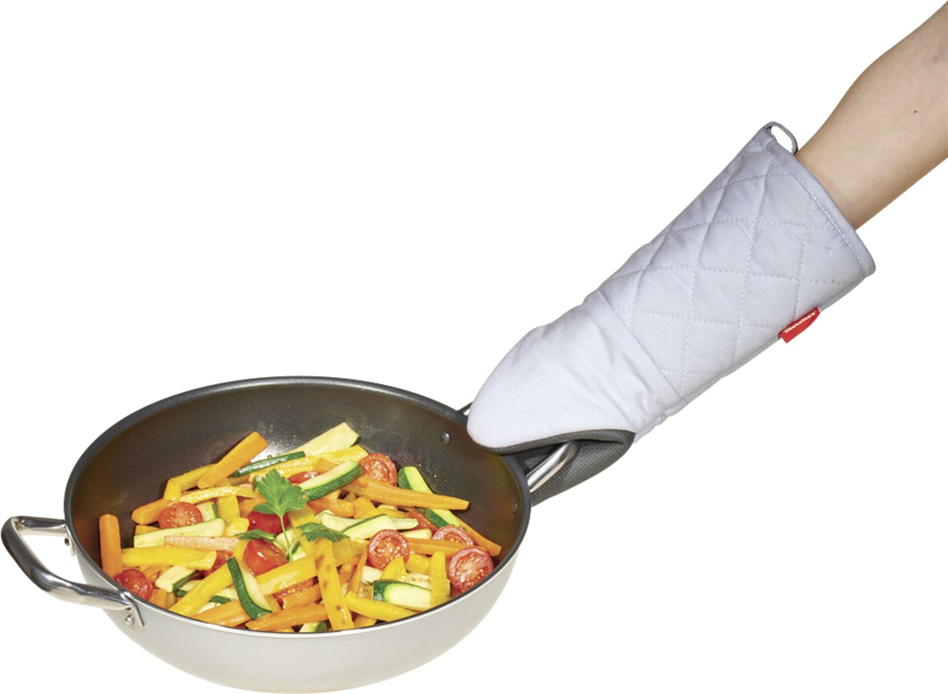 Baumwolle-Kautschuk-Polyester. Rutschfeste Handfläche aus Gummi. Geeignet für Links- und Rechtshänder. Auf Kontaktwärme geprüft: max. 250 °C für mindestens 15 Sekunden. CE zertifiziert.