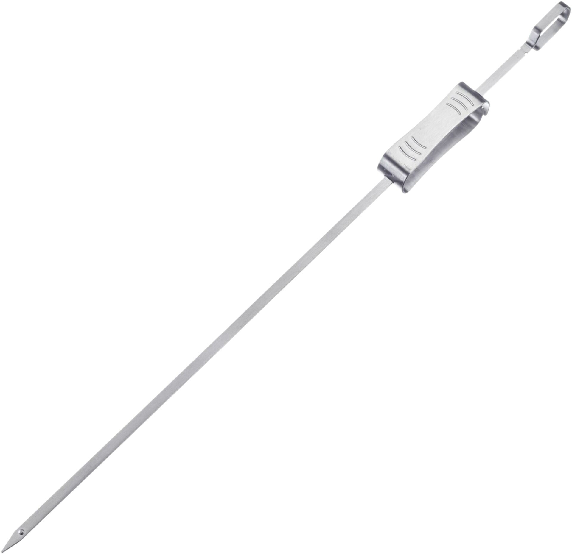 LxBxH in cm: 42,5x1,9x2,2 Grillspieß aus Edelstahl mit Schieber für leichtes Abstreifen des Bratgutes. Spülmaschinengeeignet.