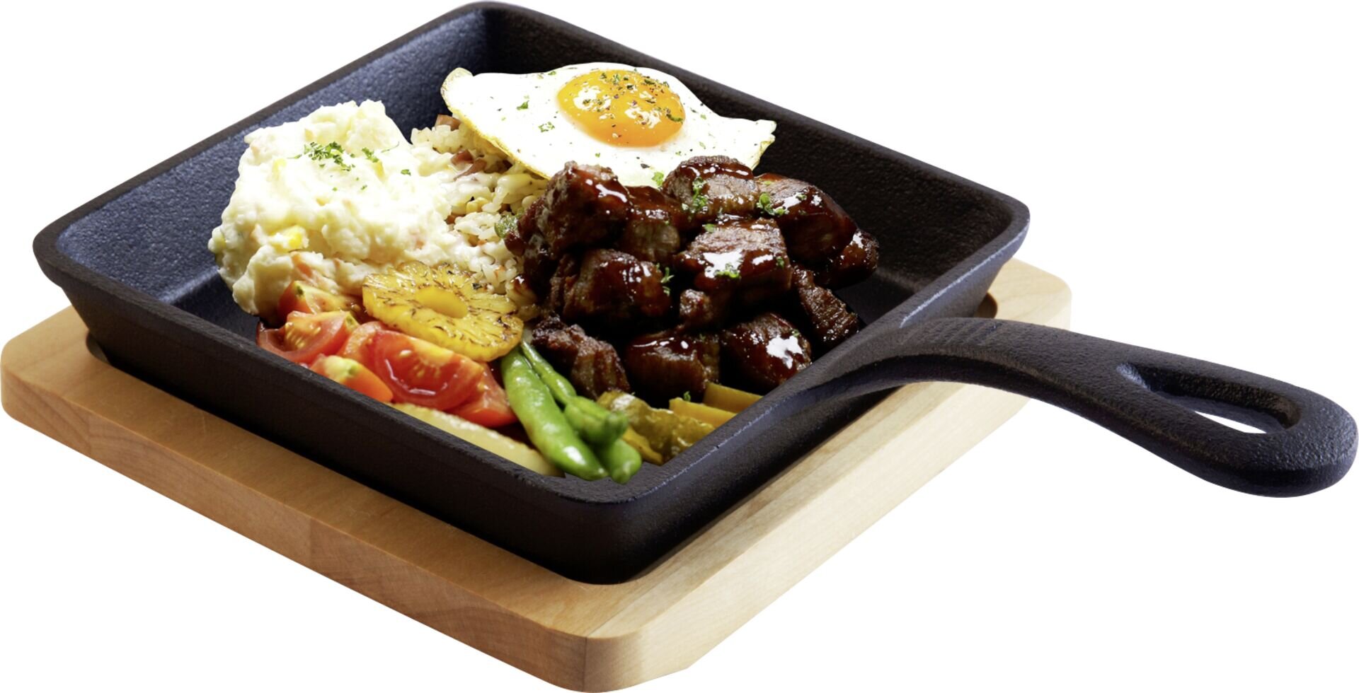 Ausführung: quadratisch mit Holztablett und einem Langgriff
