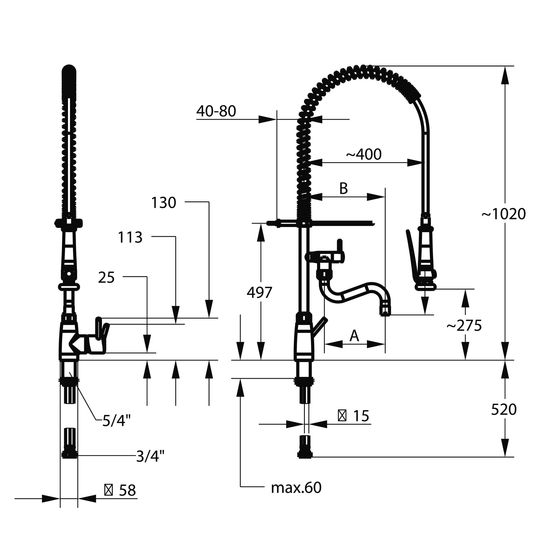 › flexible Anschlussschläuche 1/2" mit Übergang auf 3/4"