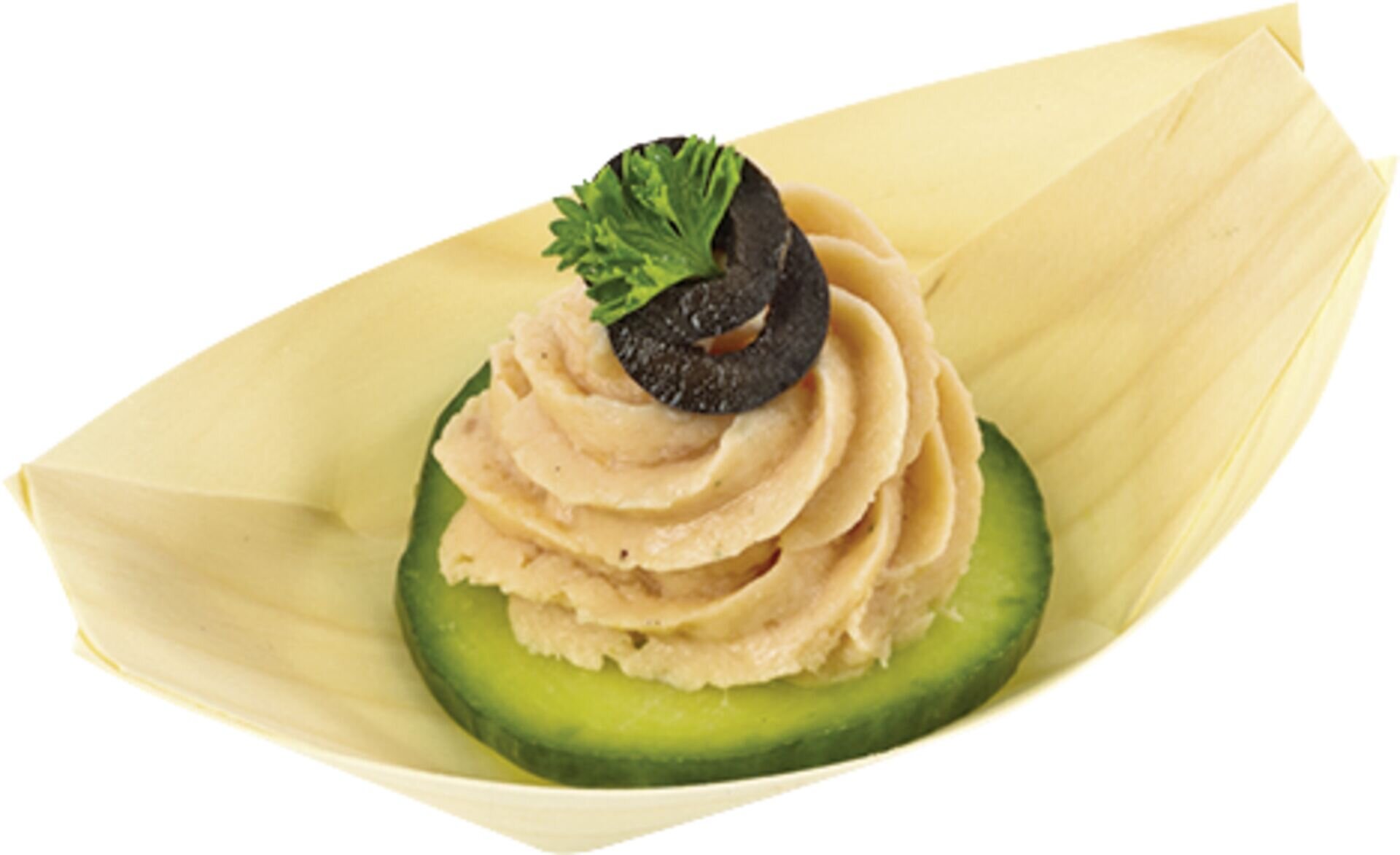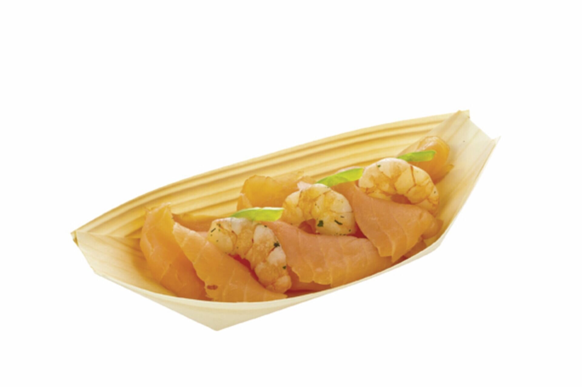 Pinienholz. Kompostierbar, temperaturbeständig: 80° C. Nicht geeignet für Backofen, Mikrowelle und Tiefkühlung. Im 100er Pack.