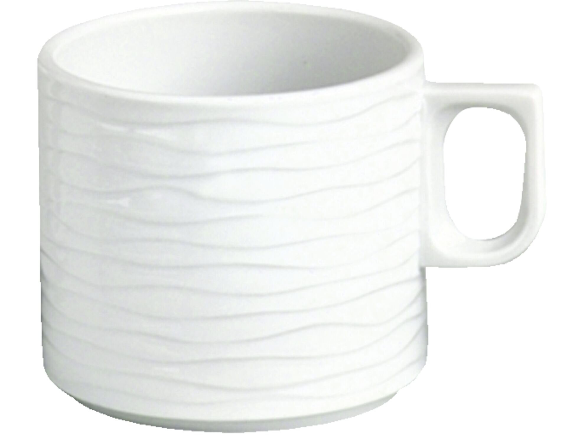 Weißes Hotelporzellan mit dekorativer Reliefstruktur. Mischsortierung. Spülmaschinengeeignet. Ausführung: Tasse obere Kaffee Maße/Inhalt: 0,18 L Porzellan, weiß. Mischsortierung.