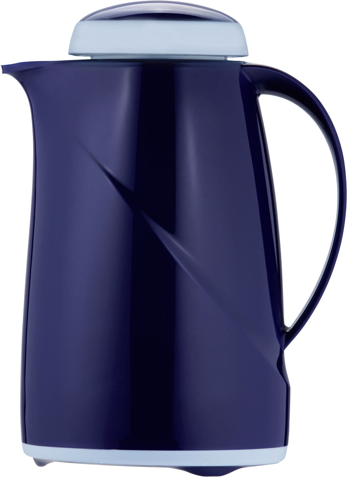 Werbeaufdruck mit Ihrem Logo auf Anfrage ab 25 Stück möglich! Helios Kunststoff-Isolierkanne mit ergonomischem Drehverschluss. Profiausführung. Sehr gute Warmhaltung durch vakuumierten und versilberten Q100-Qualitätsglaseinsatz. Das Modell ist durch die Santoprene-Versiegelung spülmaschinengeeignet. Inhalt ca. 0,6 l. Farbe: dunkelblau