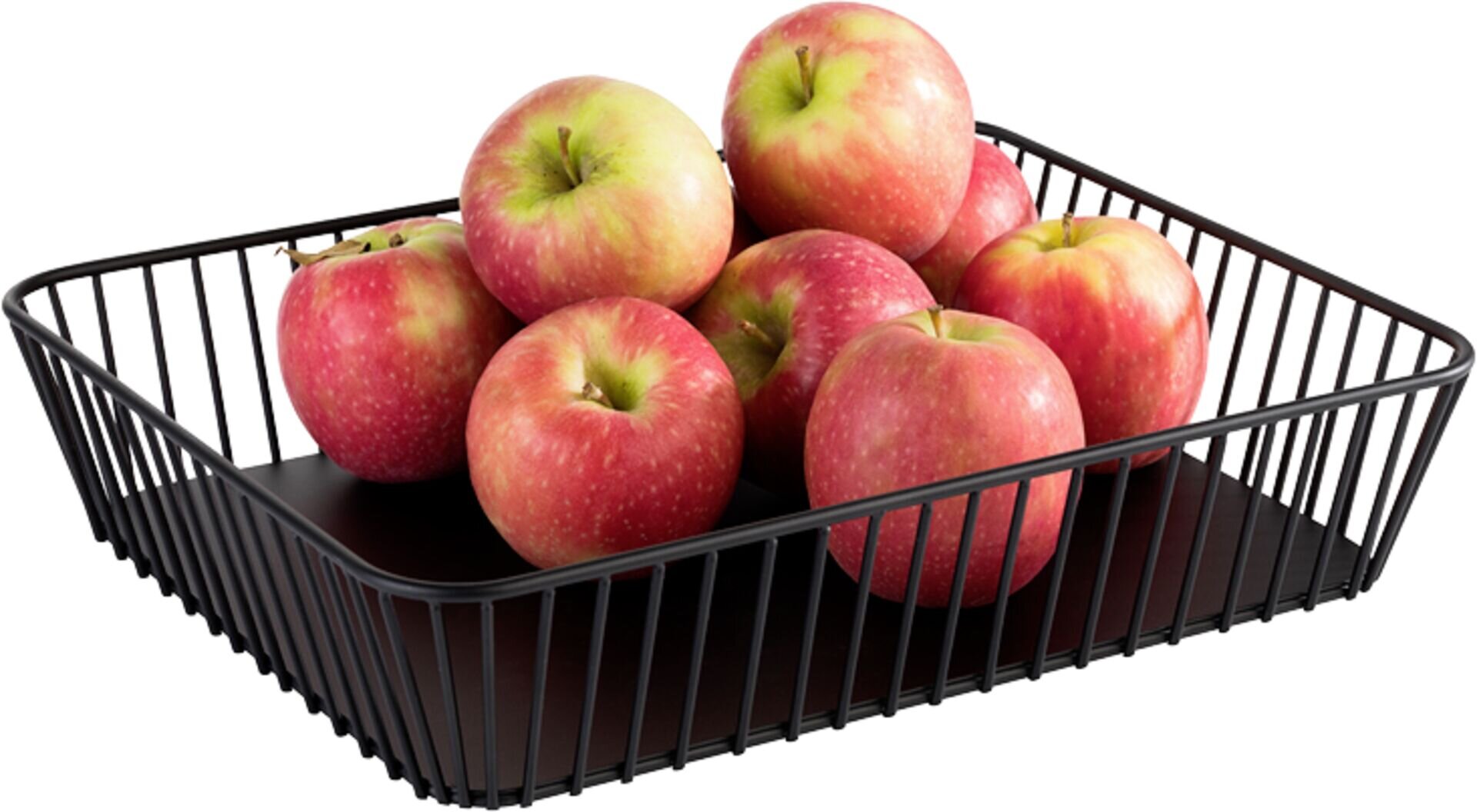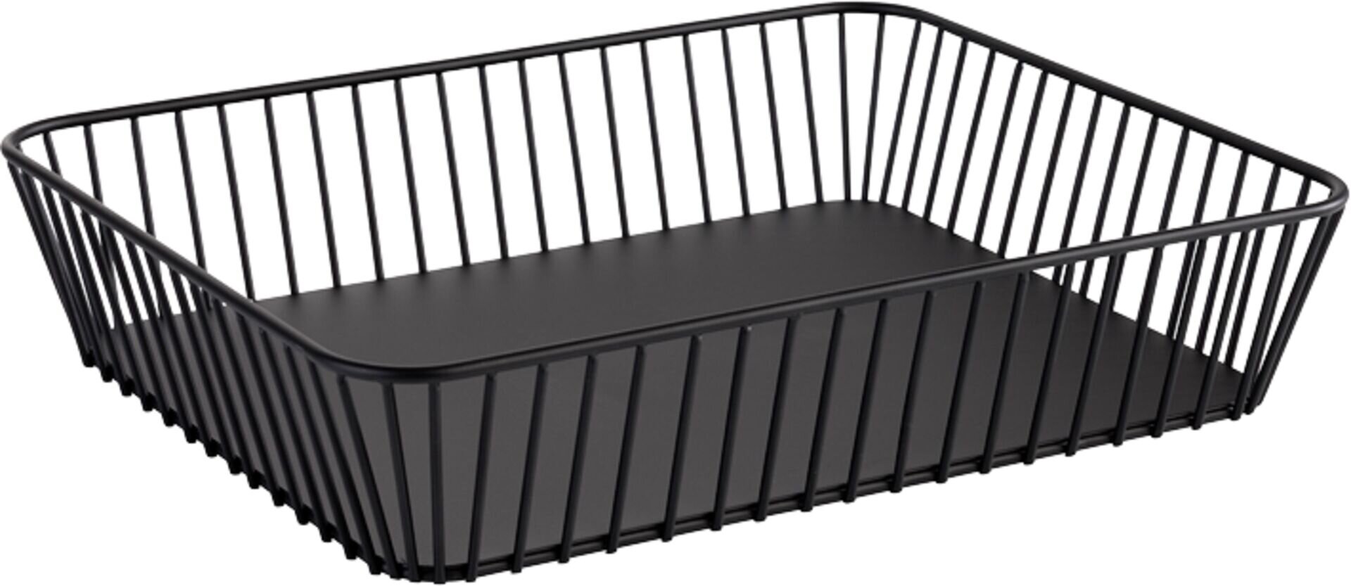 Stabile Metallkörbe. Stapelbar. Nicht spülmaschinengeeignet. In 2 GN-Größen und Anit-Rutsch-Füßchen. Farbe schwarz.