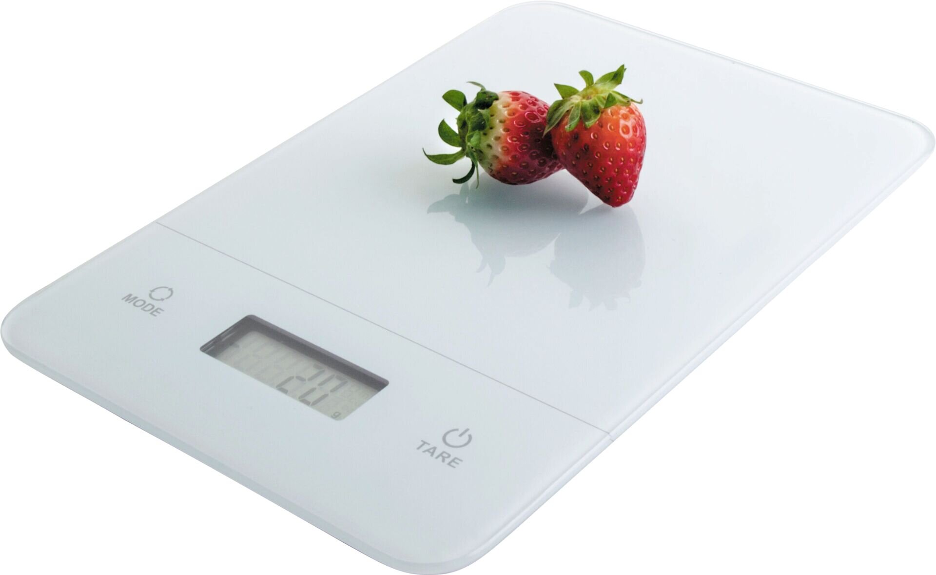 Material: Glas + Gehäuse (Unterteil) aus weißem Acrylnitril-Butadien-Styrol (ABS). Wiegebereich bis 5 kg. Unterteilung in 1g-Schritten, Leergewichtsfunktion (Tara), automatische Nullstellung, Einheiten: g/oz/ml/Tassen. Batterien werden mitgeliefert 4x1,5V AA.