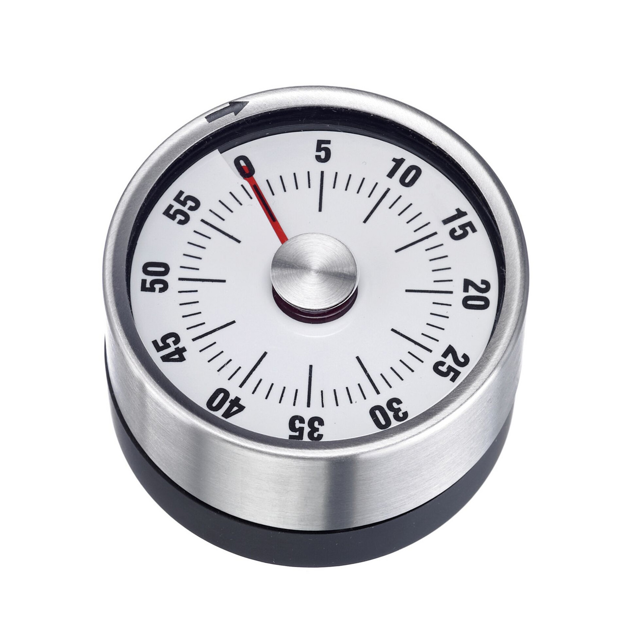 Ø in cm: 6 Edelstahl, ABS. Mit Magnet-Rückseite, gummiert. Einstellmöglichkeit bis 60 Minuten.