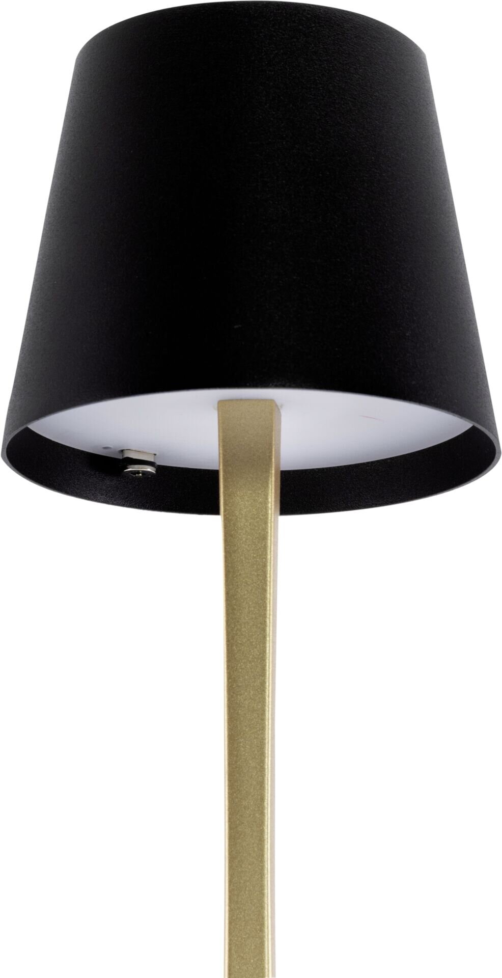 Tischleuchte mit integr. LED und Akku, schwarz/gold. Stufenlos dimmbar. Wasserdicht nach IP54. Inkl. magnetischem USB Schnellladekabel. Lichttemperatur: 2800K.