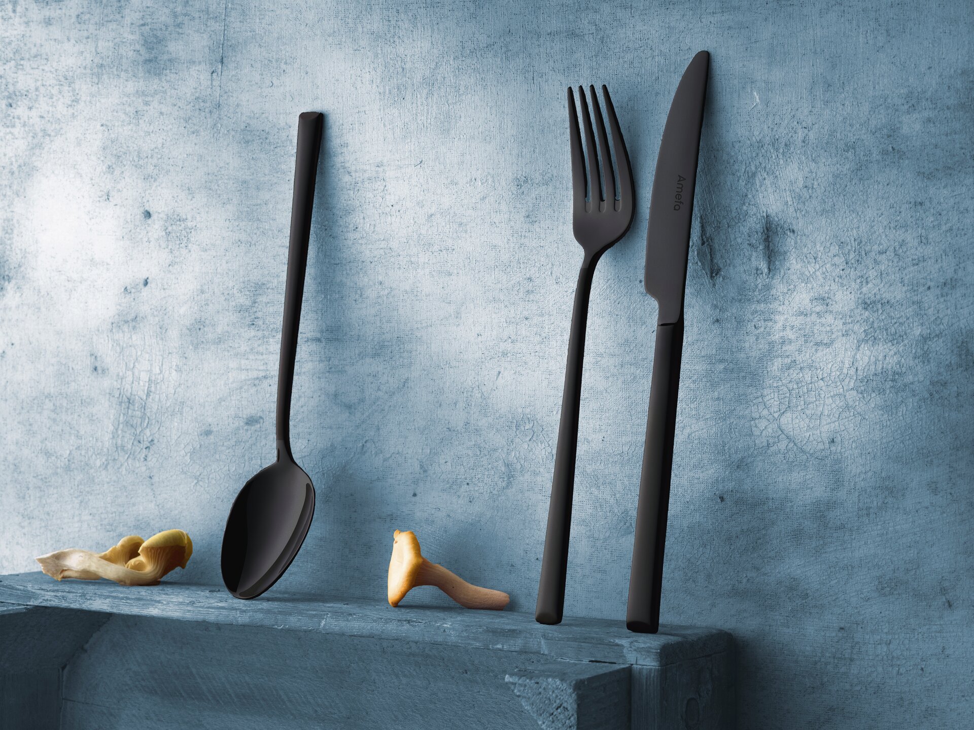Das Modell ist bereits in der Edelstahlausführung bei Top-Anwendern in der Gastronomie und Hotellerie sehr beliebt. Der Griff des Bestecks wird nach unten hin breiter. Das Griffende ist nach unten hin abgeschrägt.