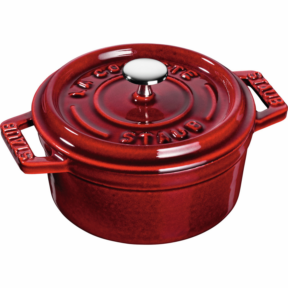 Die Cocotte ist ein französischer Schmortopf, in dem vor allem Gerichte wie Ragouts, Gratins, Suppen und Soufflés zubereitet werden. Der Topf eignet sich dazu hervorragend, weil das scharfe Anbraten und das anschließende Garen im gleichen Kochgeschirr stattfinden. Gusseisen wird schon lange für Schmortöpfe verwendet. Die spezielle Emaillierung von Staub verstärkt die bereits vorhandenen Eigenschaften des Materials: Denn Gusseisen nimmt die Hitze aus der Herdplatte sehr gut auf und speichert sie lange. Die Wärmeabgabe erfolgt dann langsam und stetig. Auf diese Weise gelingt nicht nur das schonende Garen, sondern Sie können auch die Speisen in der Cocotte gut warmhalten. Ein weiterer Vorteil der Emaillierung ist die Förderung des Eigengeschmacks der Speisen. Anstatt das Gemüse zu verkochen, bleibt es in der Cocotte von Staub schmackhaft und aromatisch, während Fleisch saftig und zart wird. Aufgrund der 10 cm Durchmesser und des Fassungsvermögens von 0,25 l eignet sie sich vor allem für kleine Speisen oder einzelne Portionen, die dann in dem stilechten Topf am Tisch serviert werden können. Mit den Cocottes von Staub gelingen Anfängern und Hobbyköchen Gerichte aus der französischen Küche mit Leichtigkeit.