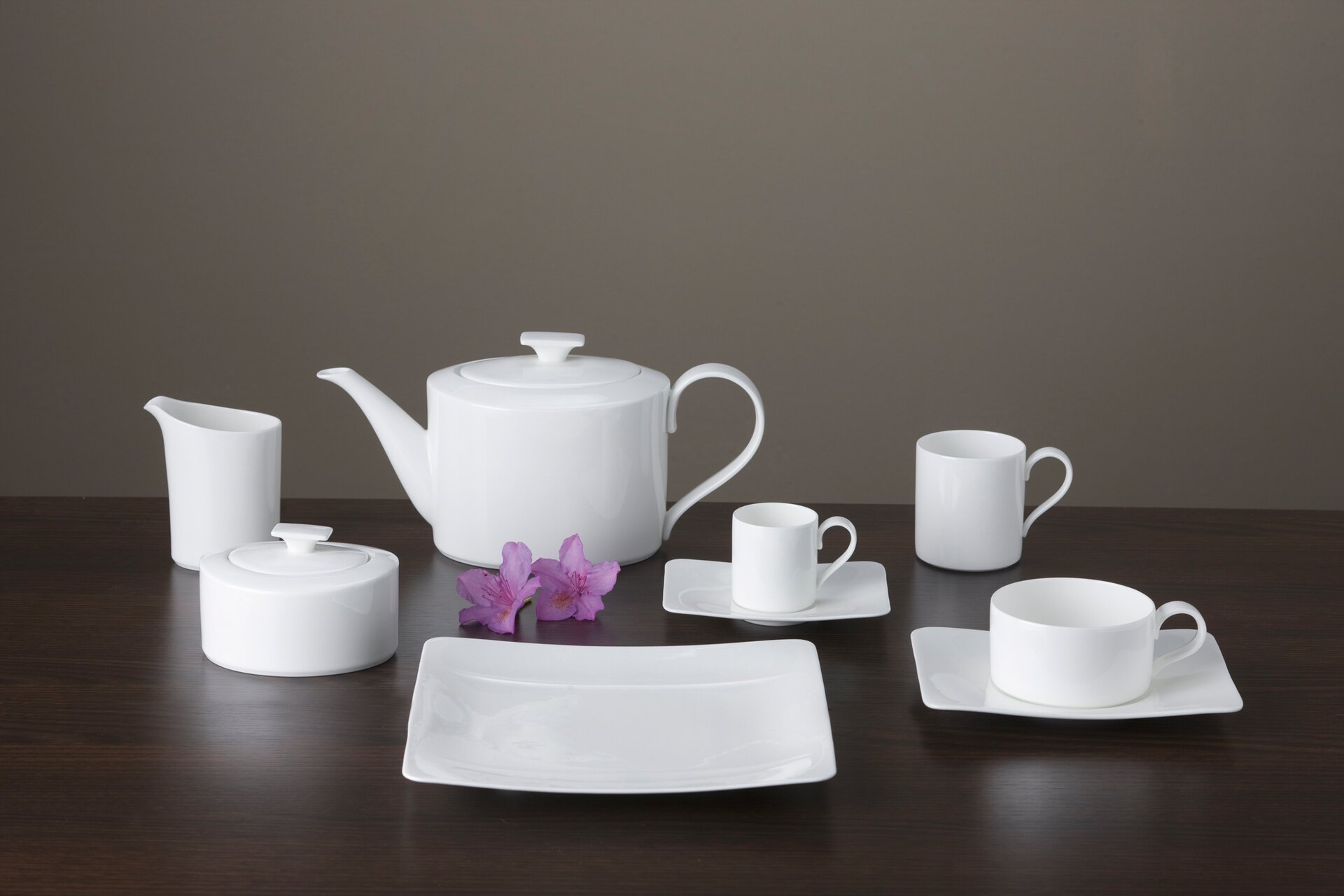 Modern Grace ist inspiriert vom geometrischen Mobeldesign der 1930er und 1950er Jahre. Die außergewöhnliche Formenvielfalt aus streng geometrischen Tassen, rechteckigen Tellern mit sanft geschwungenem Rand und zierlichen, ovalen Schalen schafft endlos viele Kombinationsmöglichkeiten für Ihr ganz individuelles Arrangement.