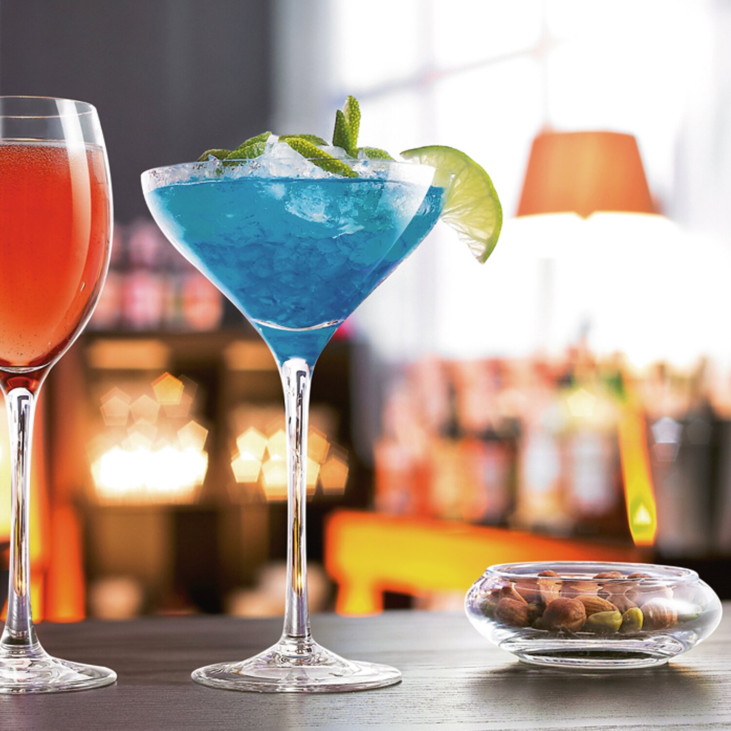 Die Serie Cabernet, wozu dieses Glas New Martini gehört, zeichnet sich durch sehr hohen Glanz und besonders feinen Trinkrand aus. Eine komplette Kollektion für Cocktails wie Martini, Margarita, Champagner.