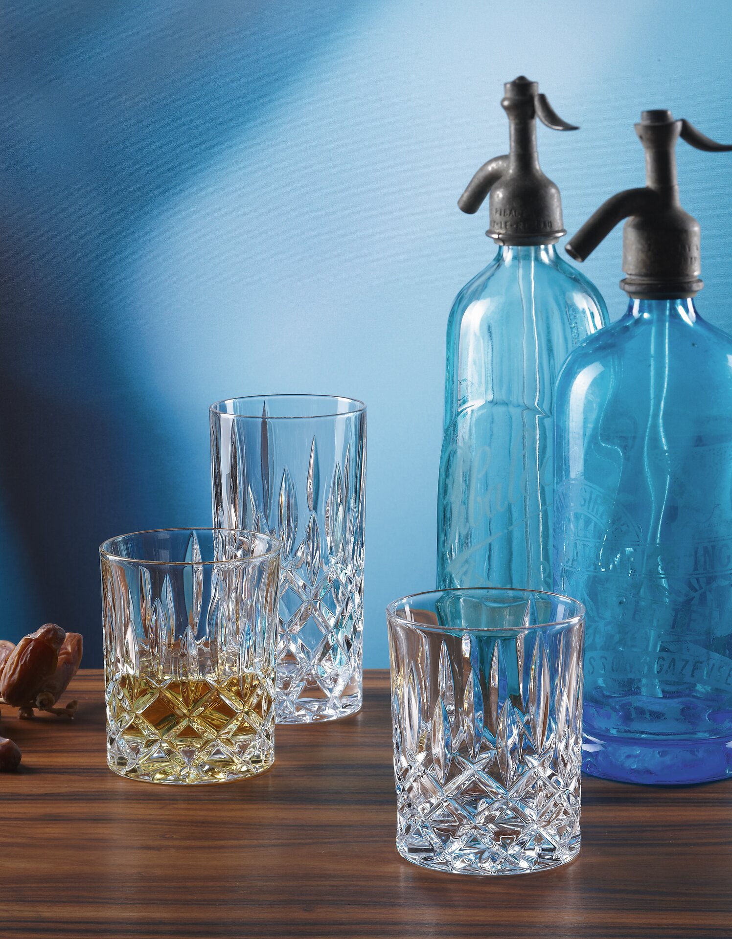 Mit dem neuen NOBLESSE Barware Set holt man(n) sich einen Hauch von Luxus nach Hause. Ästhetisch, mit edlem Schliff, aus feinstem Kristallglas hergestellt, sind diese Gläser ein "Must Have" für Liebhaber und all jene, die ihrer Hausbar neuen Glanz verleihen möchten.