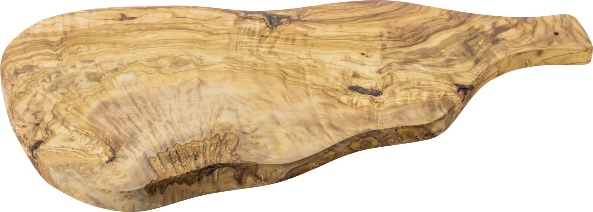 Olivenholz. Griff ca. 9x6 cm. Mit Olivenöl eingelassen. Durch Dichte und Härte des Holzes für den täglichen Gebrauch schnittunempfindlich, jedes Exemplar ein Unikat. Maße ca.