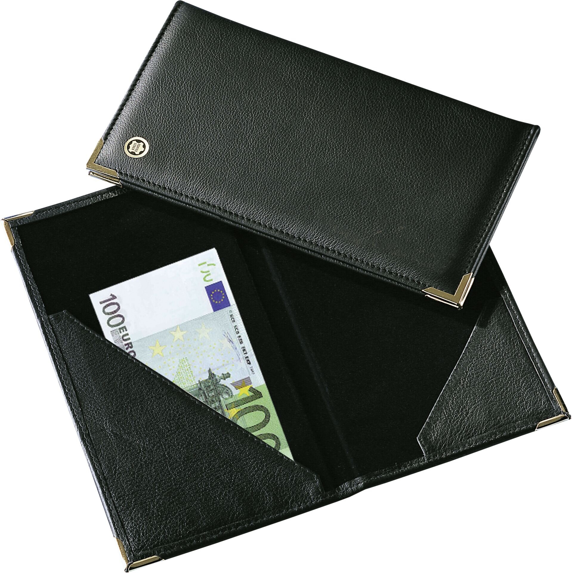 LxB in cm: 23,5x13 Nappaleder, schwarz, mit Silberecken.