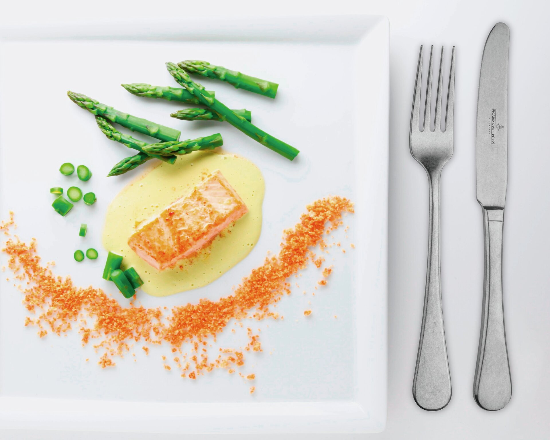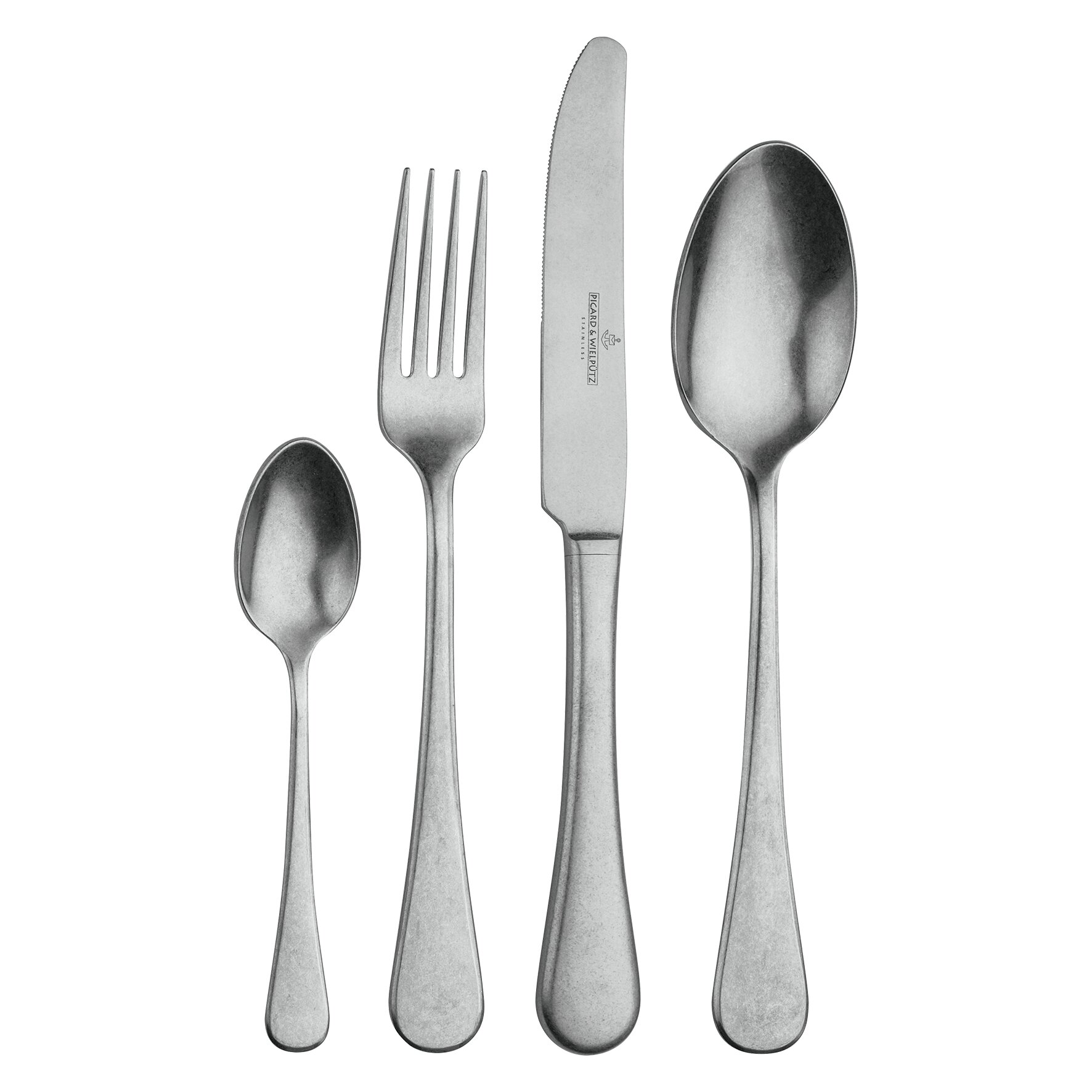 Das hochwertige Besteck Rossini in der Vintage Variante zeugt von zeitloser, schlichter Eleganz. So kann auch in modernem Ambiente, bewusst rustikale Akzente gesetzt werden. Die rundliche Formgebung mit sanft geschwungenen Linien, wird Ihren Gästen im Gedächtnis bleiben. Das spülmaschinenfeste Besteck mit einer Materialstärke von 3,0 mm wird, mit Ausnahme der Massivmesser, in Solingen produziert. Insgesamt kann aus 17 verschiedenen Einzelteilen gewählt werden und die Messer sind ebenfalls als Hohlheftmesser mit einer eingesetzten Klinge verfügbar