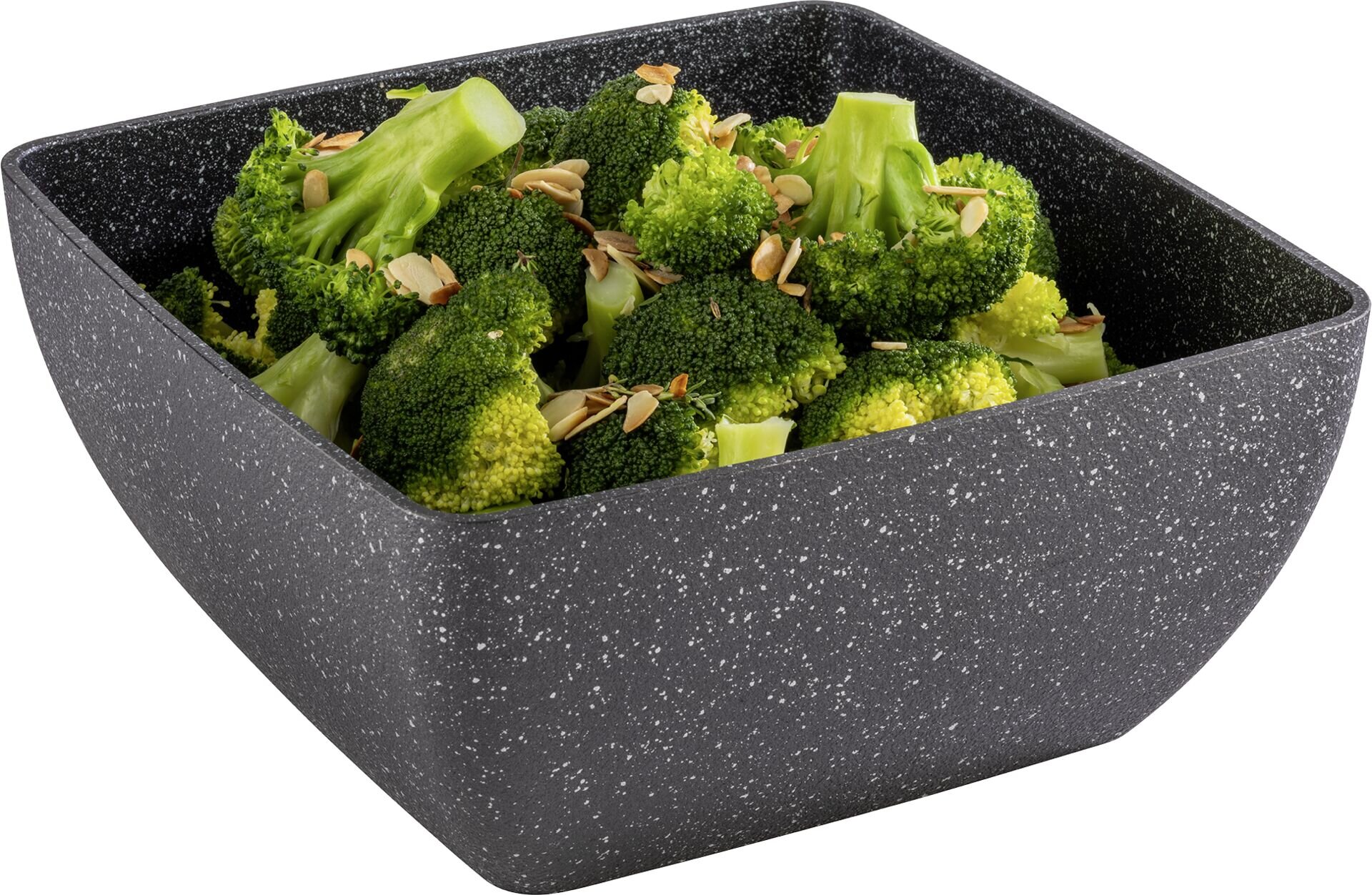 Aluminiumguss, schwarz-silber, antihaftbeschichtet, spülmaschinengeeignet. Temperaturbereich ca. -30 °C bis ca. +200 °C.