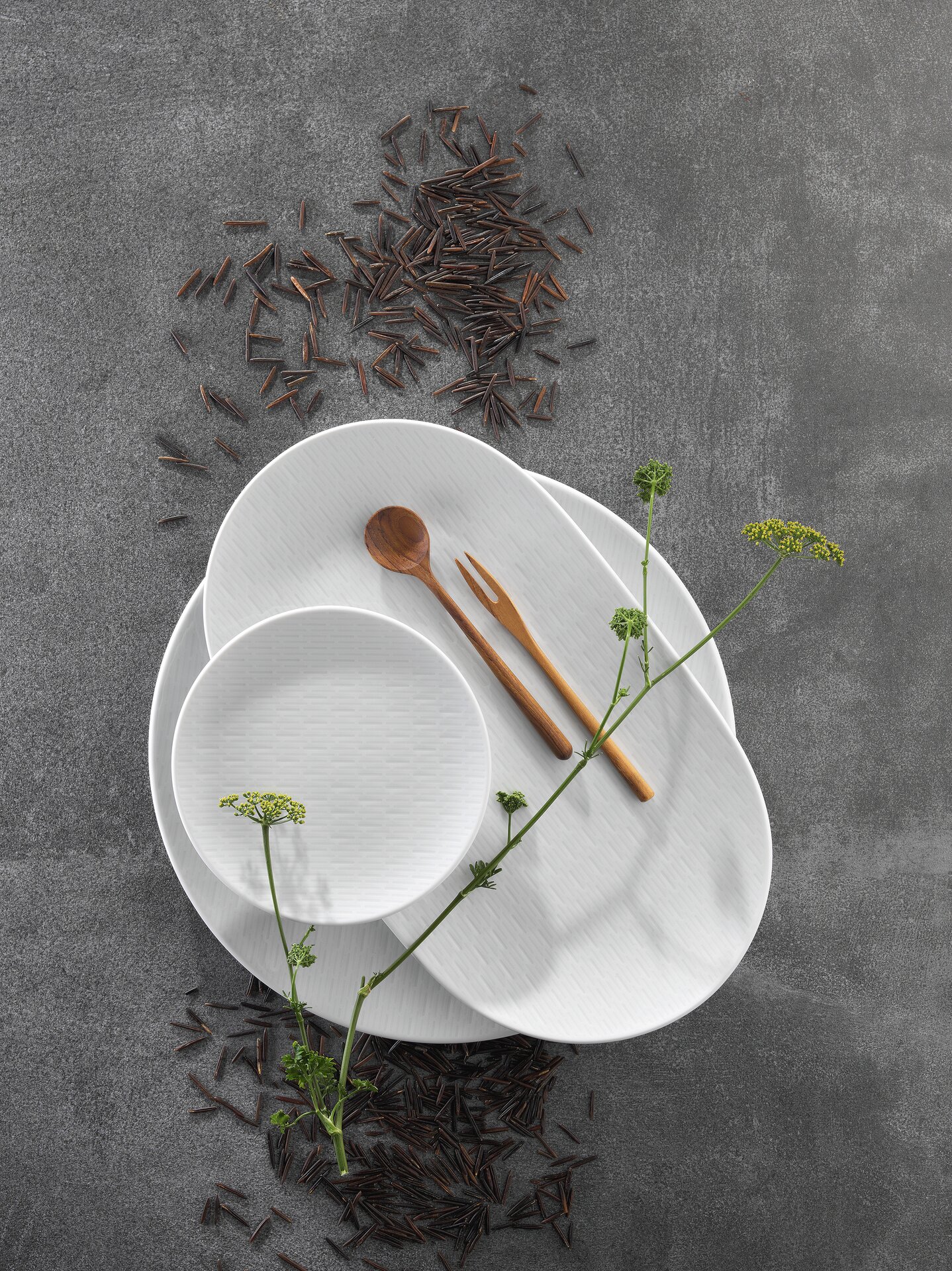 Das Design von SCOPE ist klar und dadurch äußerst vielseitig einsetzbar. Neben glatten und strukturierten Tellern, Bowls, Schalen und Platten in reinem Weiß umfasst das Sortiment auch Artikel in den Glasurfarben GLOW GRAY und SEA. Die Farbintensität variiert bei jedem Stück leicht, was den handgefertigten Charakter der Kollektion betont.