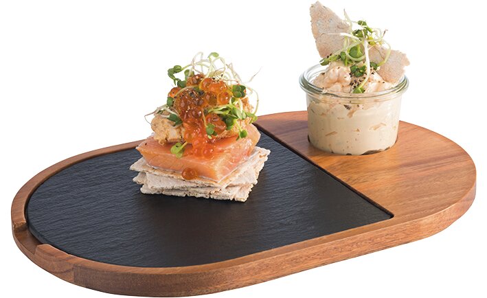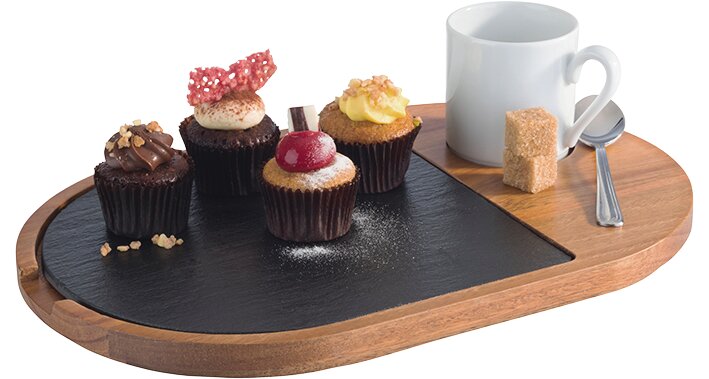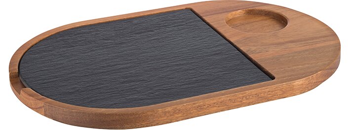 Servierbrett 2-tlg. 280 x 175 x 20 mm Akazienholz / Naturschiefer