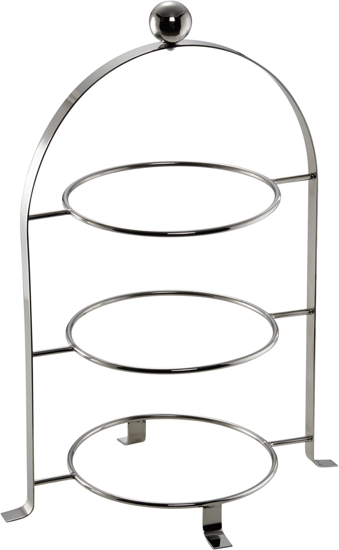 Serviergestell aus Chromstahl mit drei Etagen BxH in cm: 22,5x29 Ø Ring in cm: 10,8 Ø Teller max. in cm: 16,5 Auch für klein…