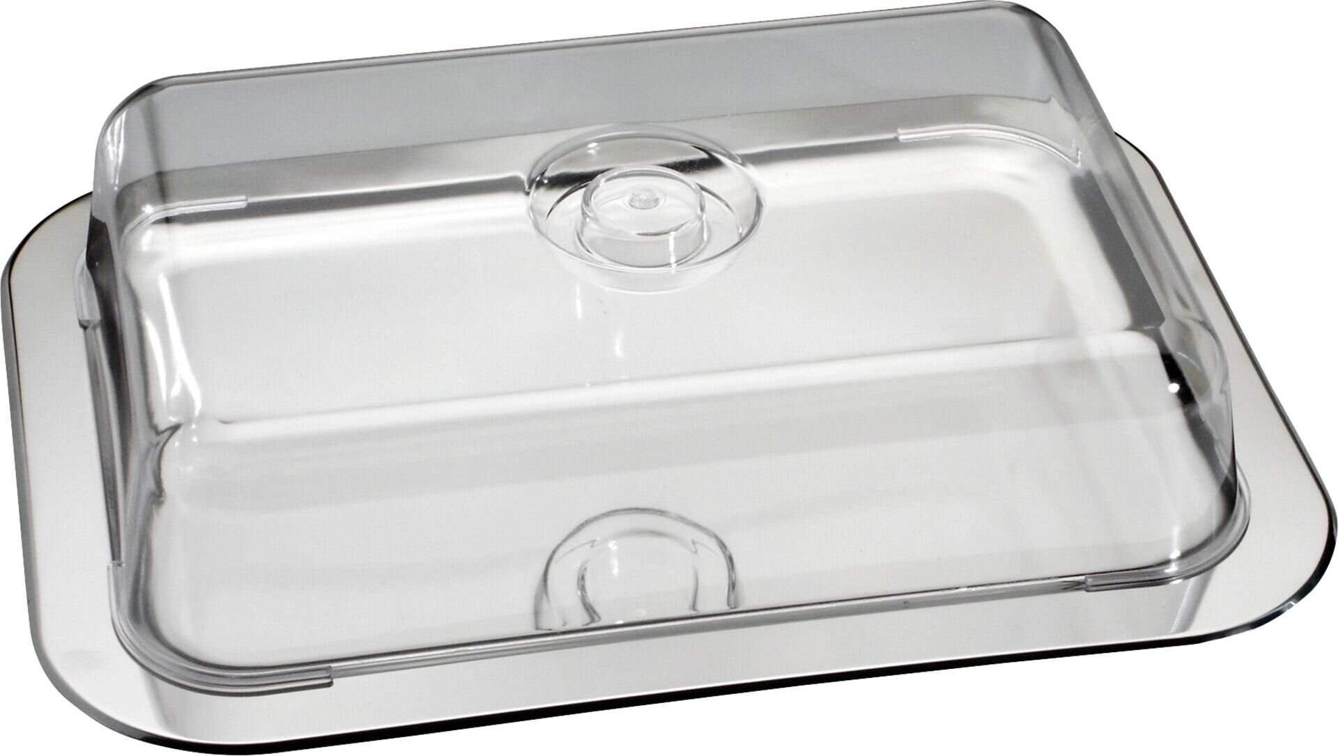 LxBxH in cm: 42x31x8,5 Made in Germany. Platte aus rostfreiem Edelstahl (spülmaschinengeeignet), Haube aus Polystryol. Lebensmittelecht. 2-tlg.