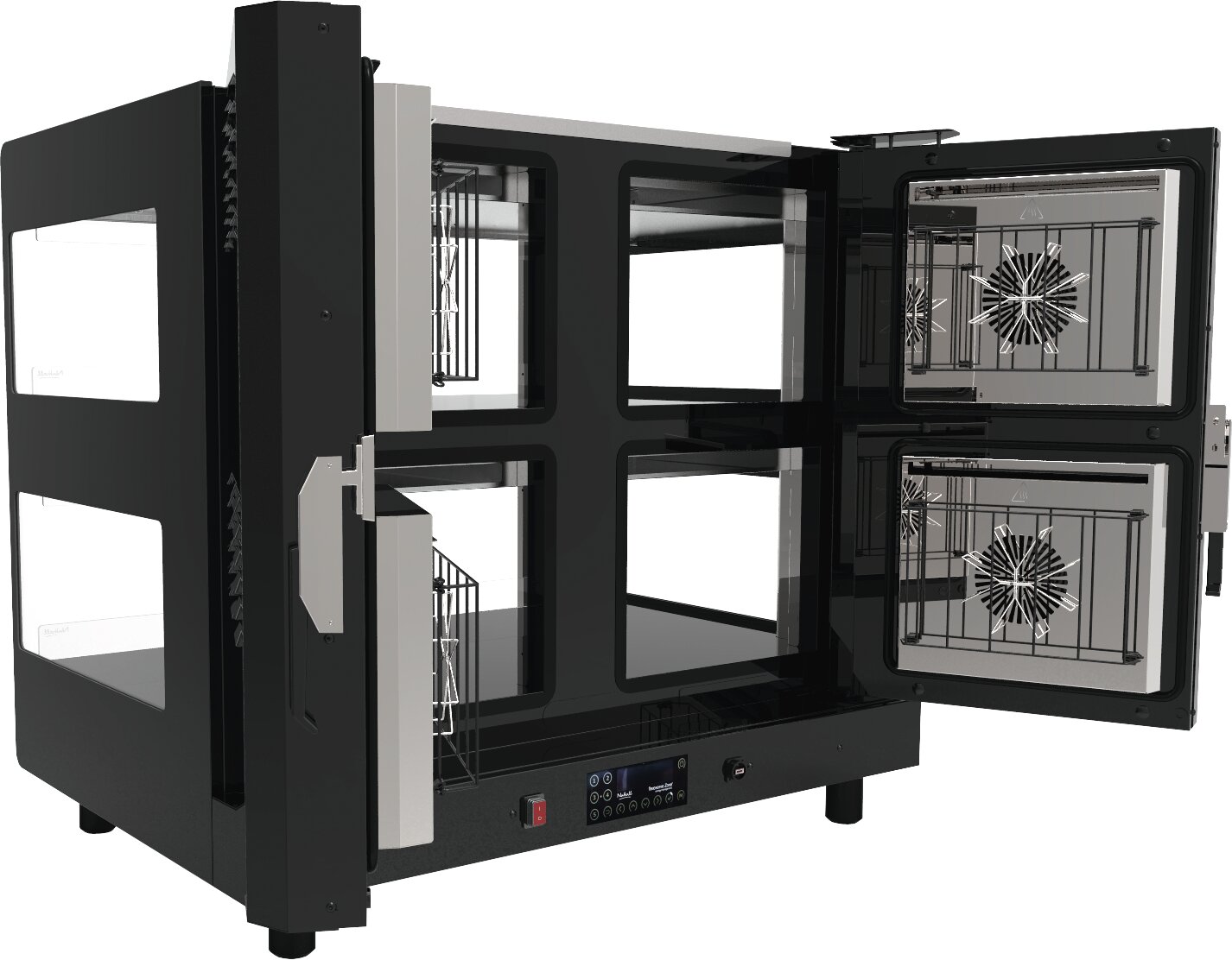 › durch die dichten Luftschleier sowie die Geschwindigkeit dieser zirkuliert die heiße Luft in jeder einzelnen Zone kontinuierlich durch das gesamte Volumen jeder Zone. Lebensmittel mit unterschiedlichen Anforderungen werden gleichzeitig sachgerecht warmgehalten