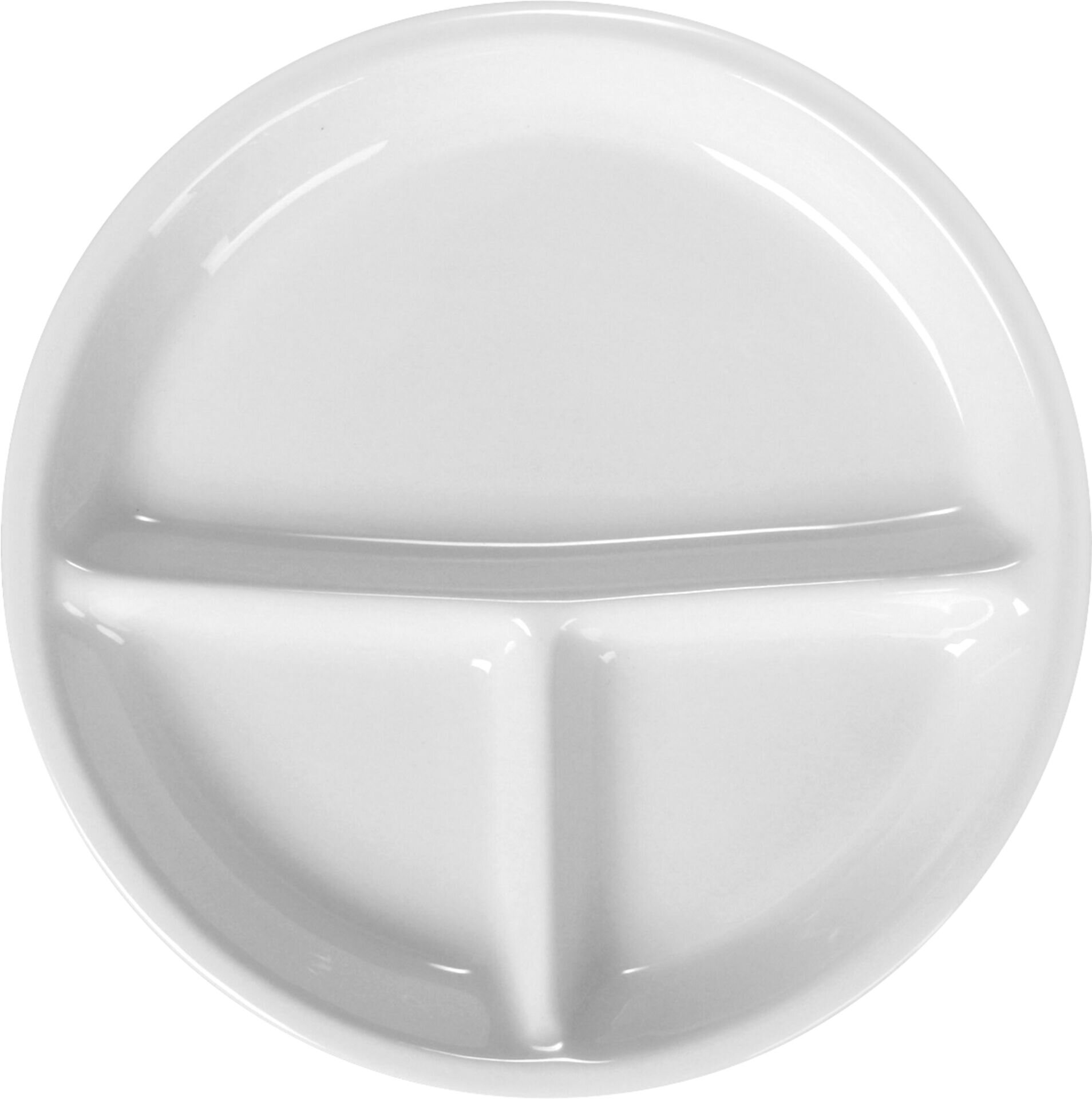 3-geteilt mit schmaler Fahne, Inhalte strichvoll: kleine Segmente je 0,10 l, großes Segment 0,30 l, stapelbares GV Porzellan, weiß, Mischsortierung. Temperaturbeständig bis +250° C. Mikrowellengeeignet.
